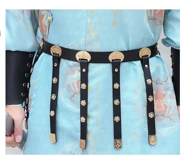 둥근 목 로브 골동품 중국 스타일 다자간 핸섬 한 의류 액세서리 소년 및 어린이를 위한 보가드 가죽 벨트