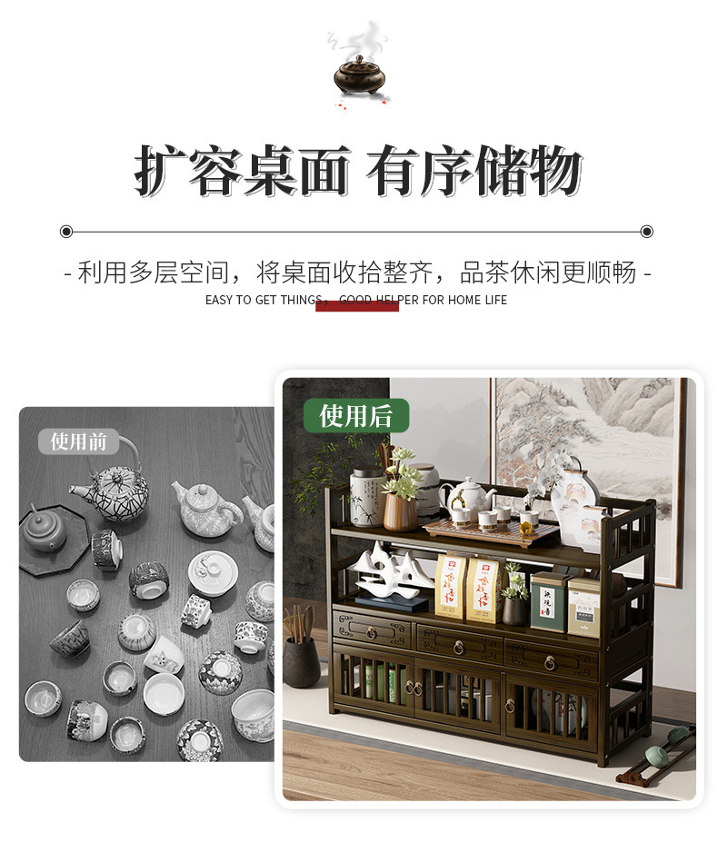 데스크탑 작은 Bogu 랙 티 컵 랙 주전자 디스플레이 랙 솔리드 우드 듀오 바오 파빌리온 티 랙 티 세트 장식품 스토리지 랙스토어 가기