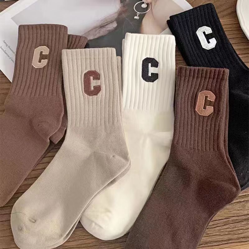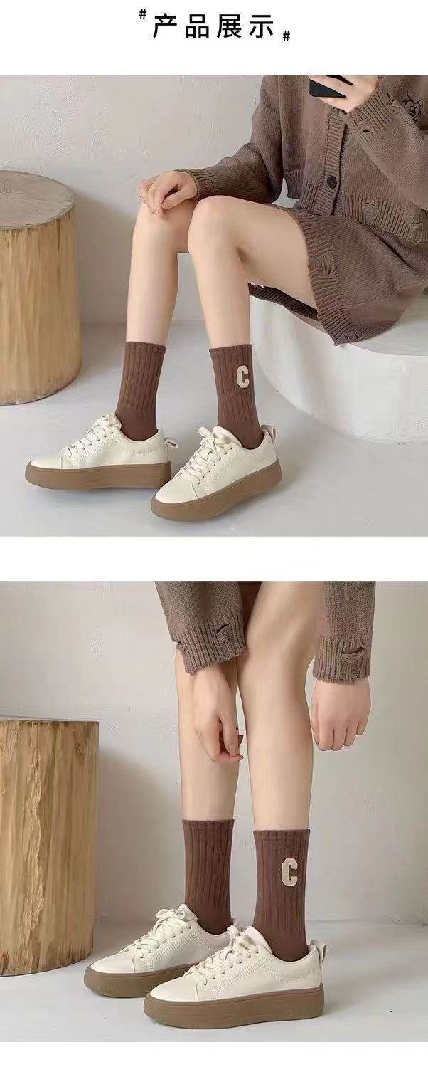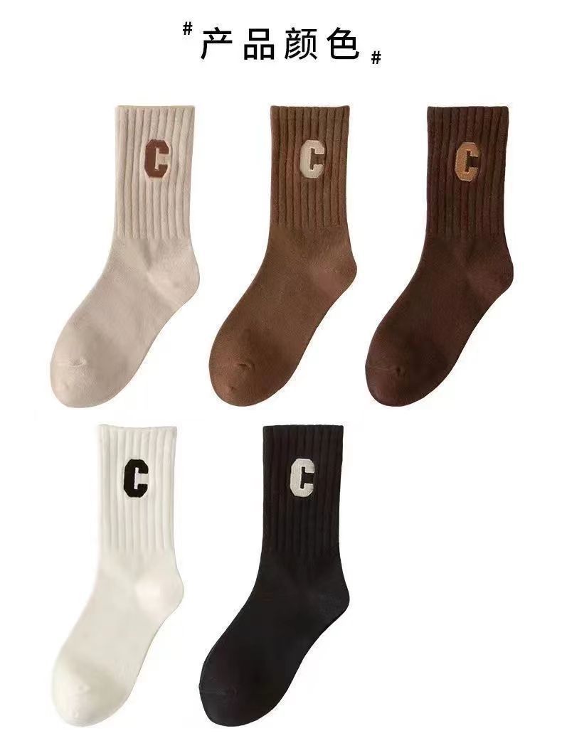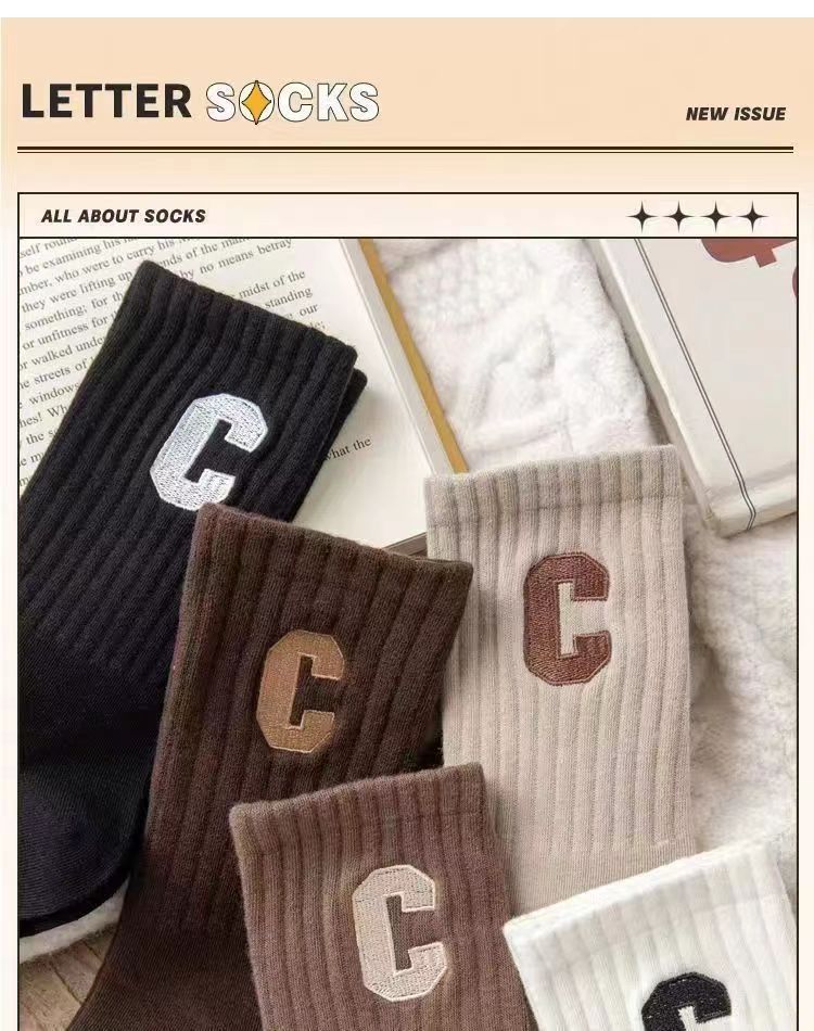 양말 여성 인터넷 인기있는 동일 스타일 스택 양말 대형 C 편지 양말 한국식 미드 튜브 양말 가을과 겨울 일본식 면 양말 유행스토어 가기