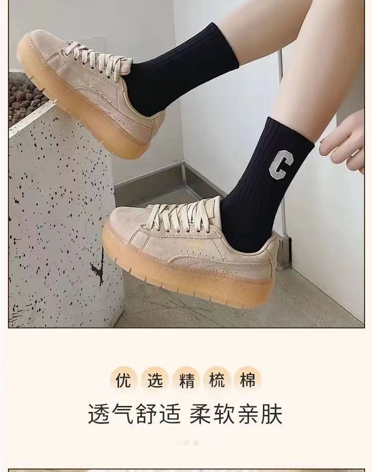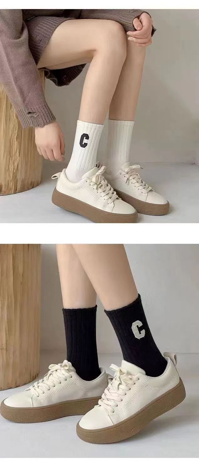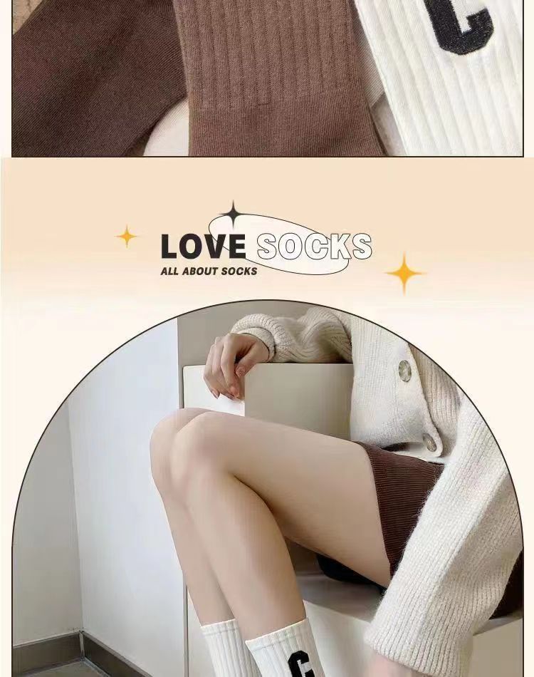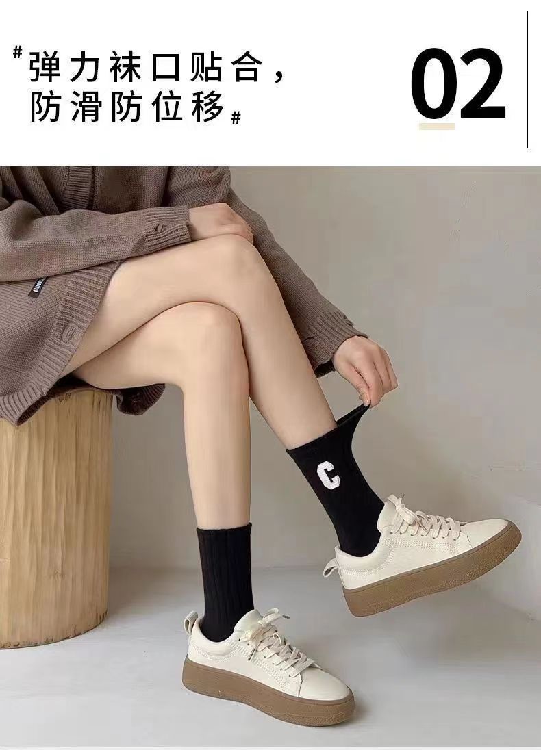 양말 여성 인터넷 인기있는 동일 스타일 스택 양말 대형 C 편지 양말 한국식 미드 튜브 양말 가을과 겨울 일본식 면 양말 유행스토어 가기