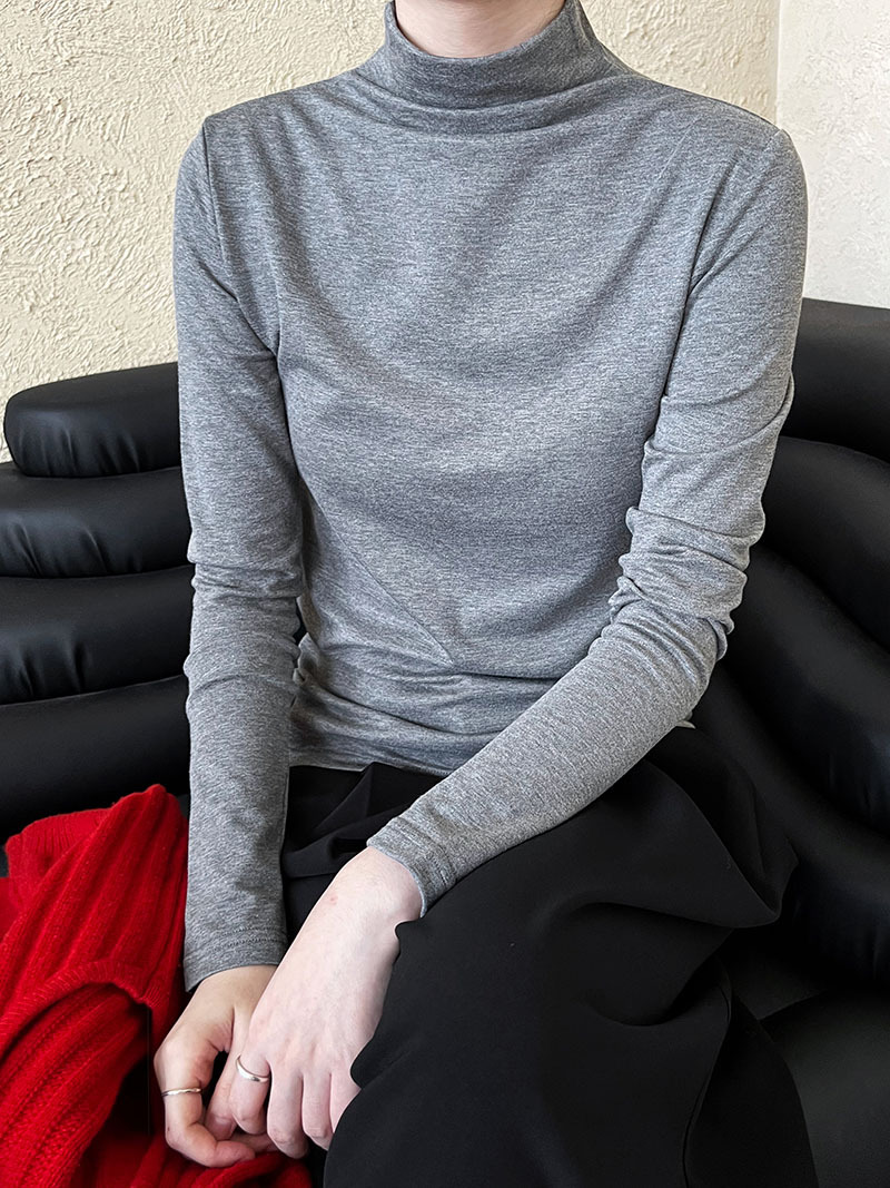 Lu Xi 여성용 하프 터틀넥 바닥 셔츠 2025 가을, 겨울 새 스타일 레이어드 슬림 피트 심플 이너웨어 소프트 왁스 탑 2925
