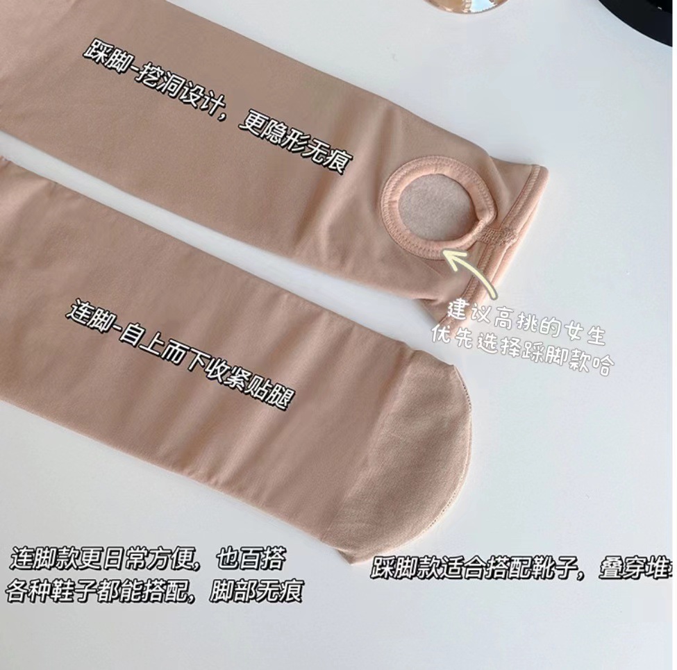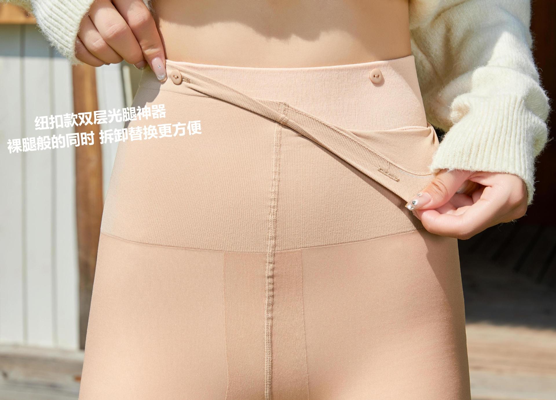 멋진 웨어하우스 버튼형 이중 레이어 누드 느낌 여성용 봄 가을 얇은 스타킹, 벨벳 안감과 두꺼운 천으로 자연스러운 느낌의 팬티스타킹스토어 가기