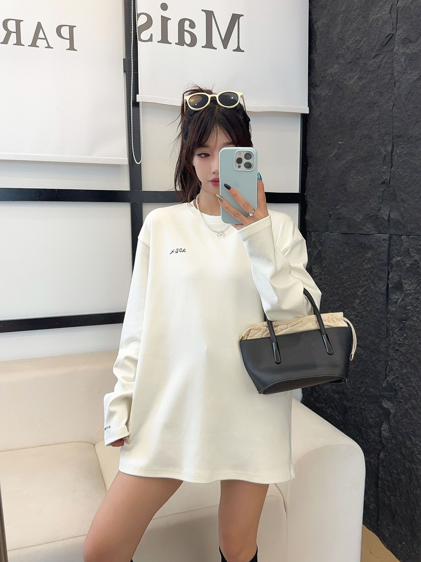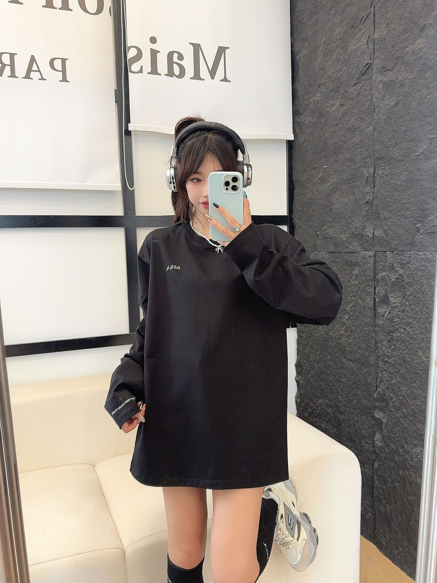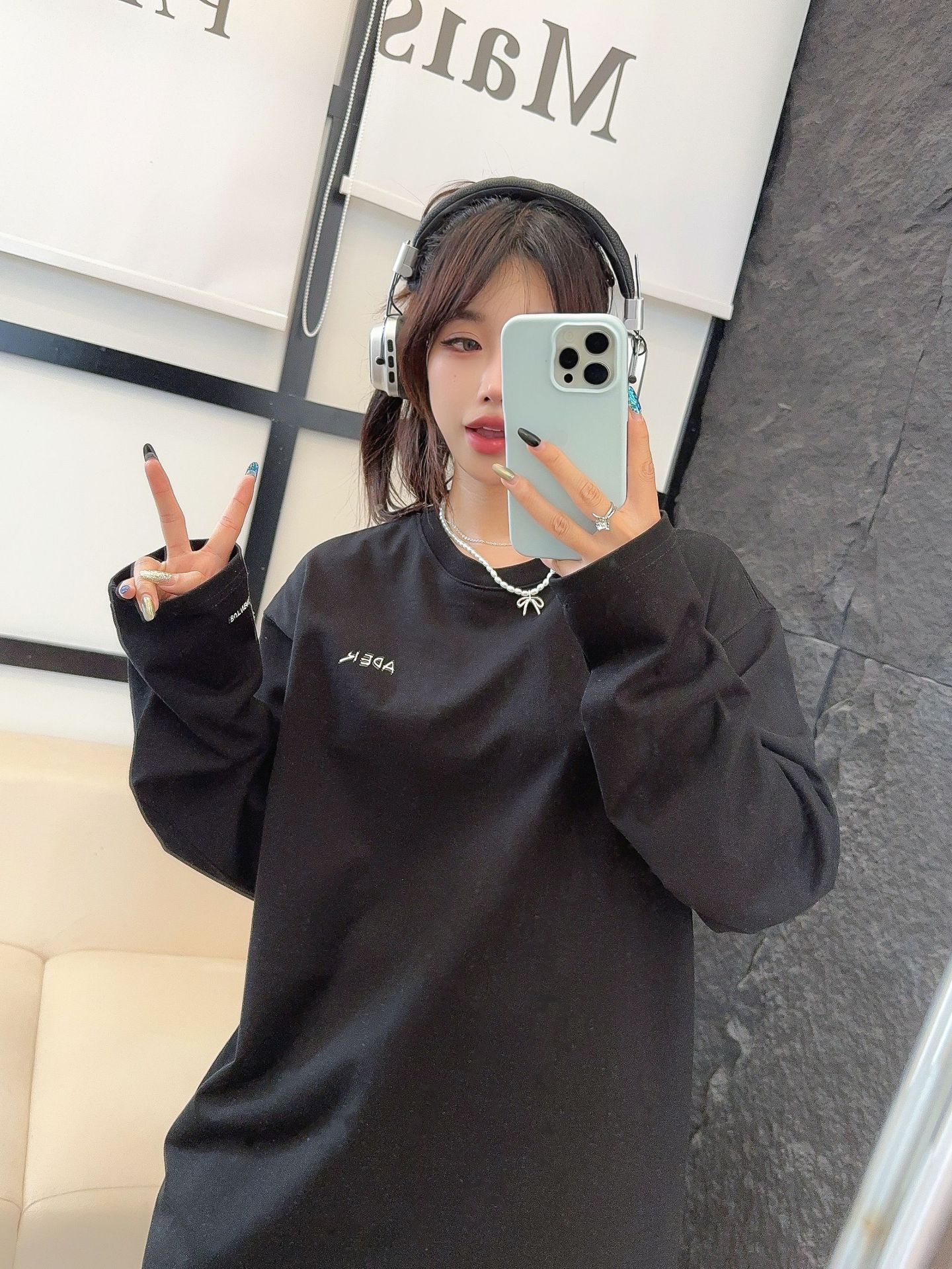 ADER 가을 새 다시 전체 인쇄 편지 라운드 넥 커플 최고 캐주얼 느슨한 남성과 여성베이스 셔츠 긴 소매