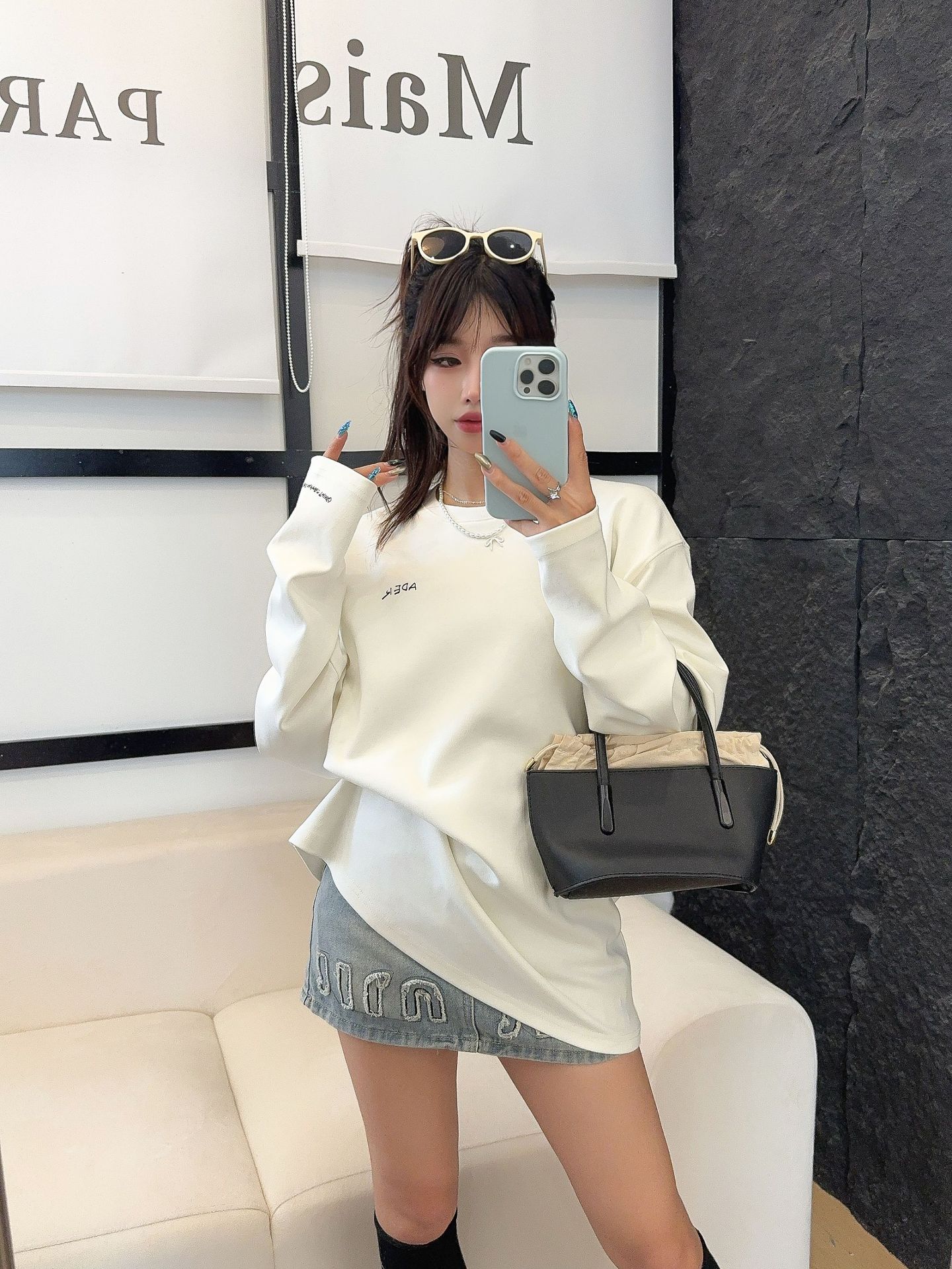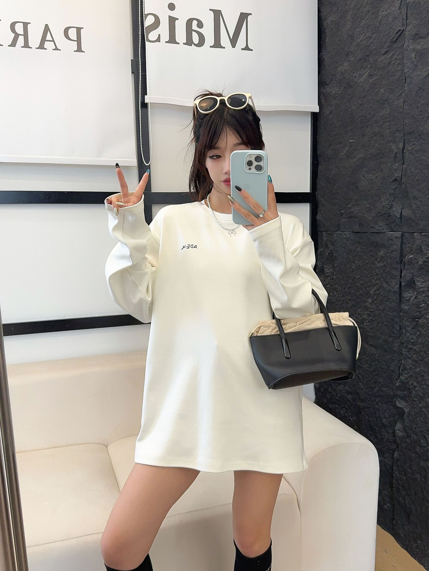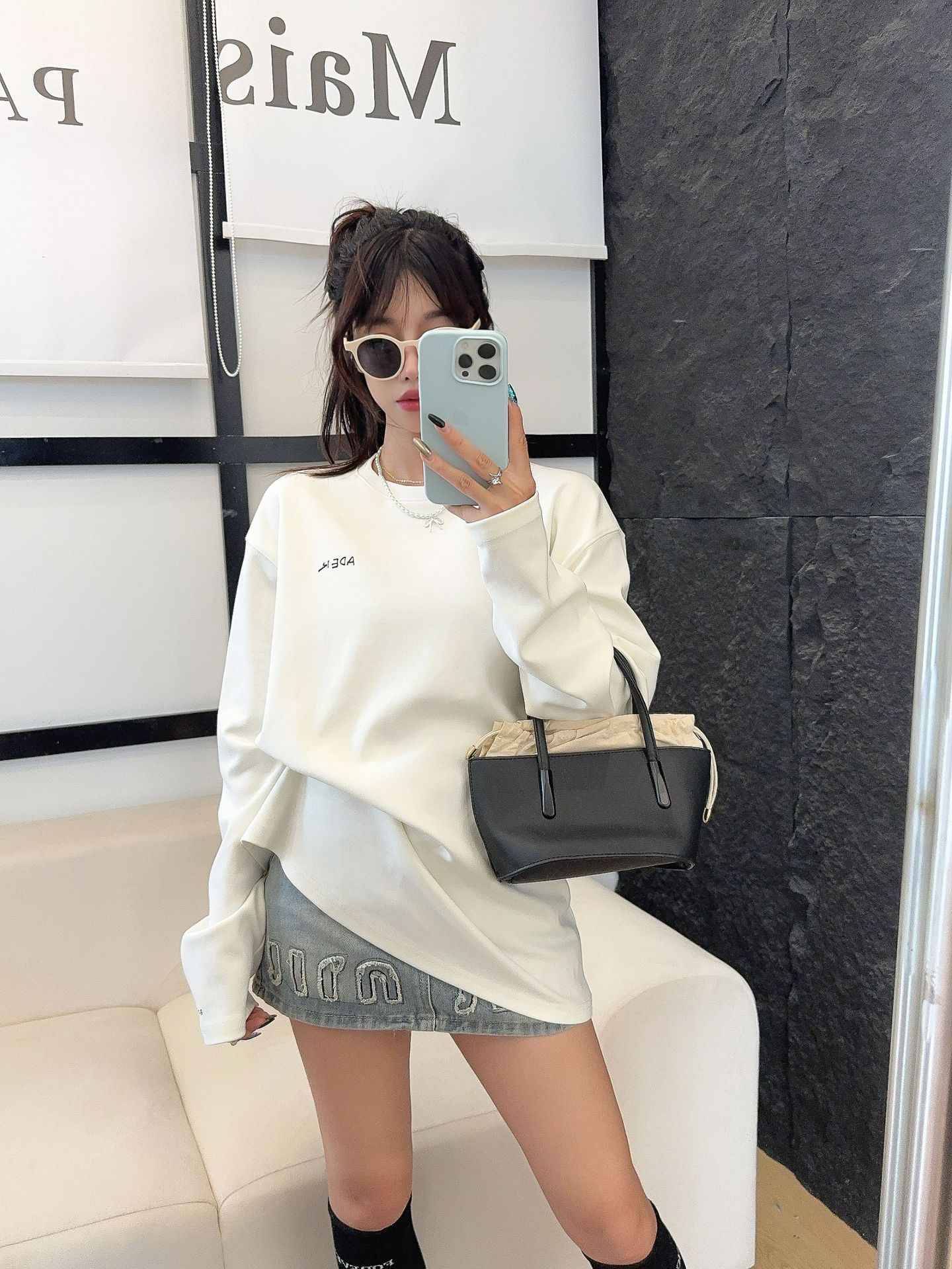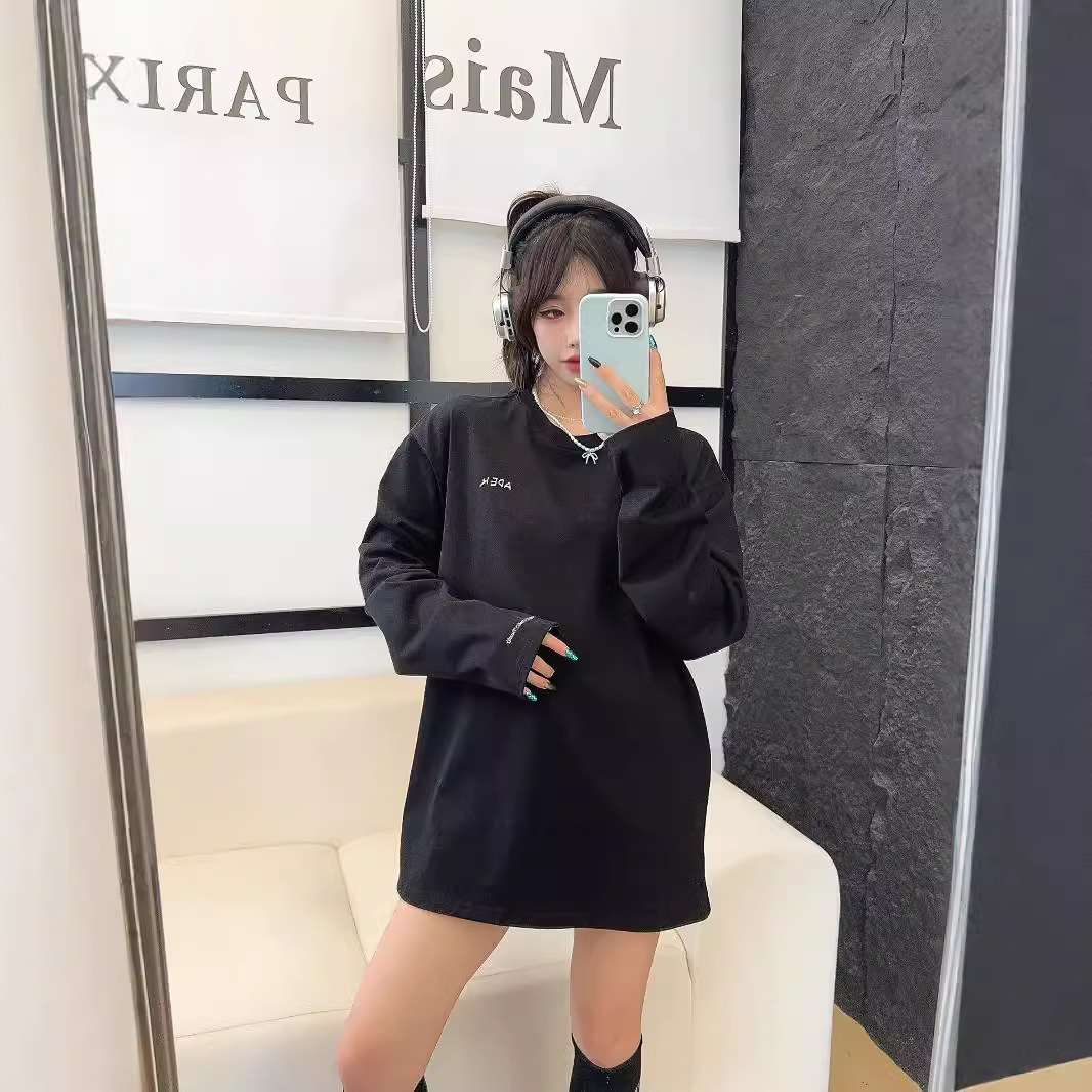 ADER 가을 새 다시 전체 인쇄 편지 라운드 넥 커플 최고 캐주얼 느슨한 남성과 여성베이스 셔츠 긴 소매