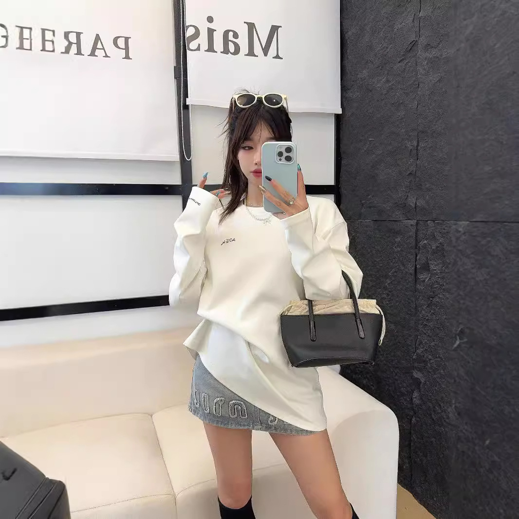 ADER 가을 새 다시 전체 인쇄 편지 라운드 넥 커플 최고 캐주얼 느슨한 남성과 여성베이스 셔츠 긴 소매스토어 가기