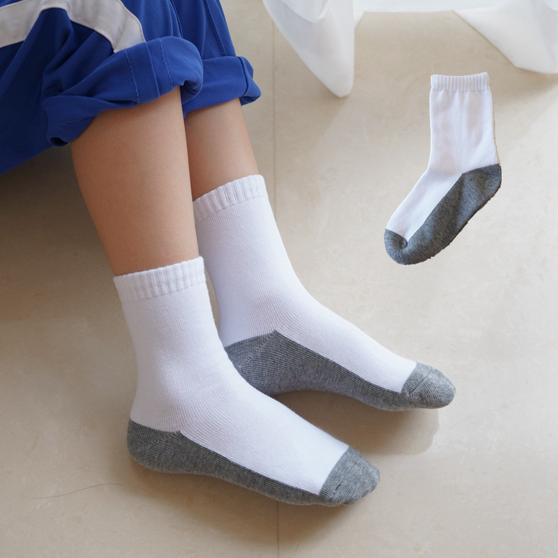 도매 가을과 겨울 어린이 흰색 학생 양말 두꺼운 면화 얼룩 방지 회색 바닥 양말 소년 소녀 탈취제 캠퍼스 흰색 양말
