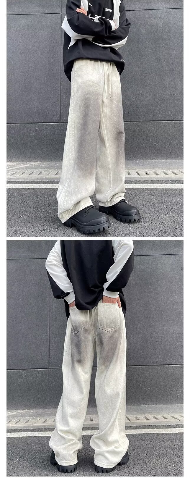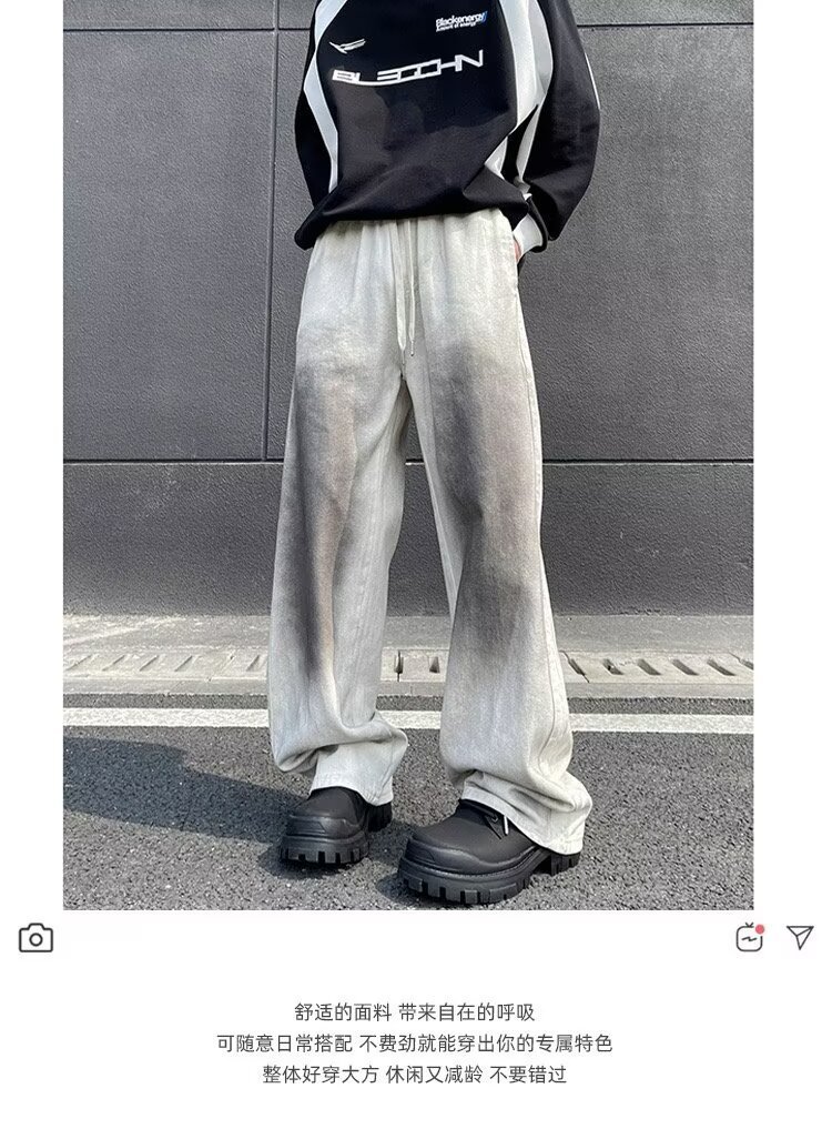 봄과 가을 새로운 한국 유행 하이 스트리트 불규칙한 오래된 더러운 세탁 청바지 남성용 하이 엔드 와이드 레그 바지스토어 가기