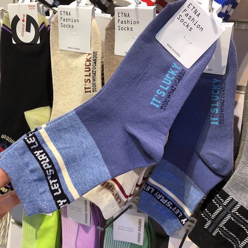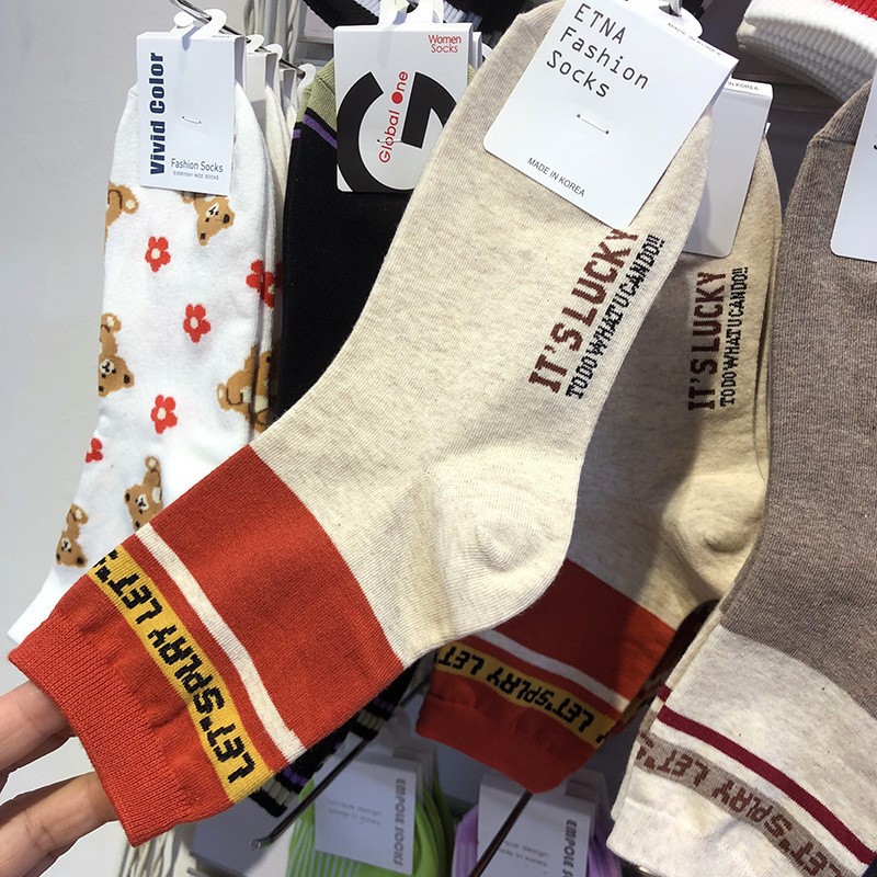 2024 한국 동대문 가을과 겨울 새 양말 복고풍 컬러 매칭 스트라이프 문자 P 미드 튜브 여성 양말 스포츠 면 양말스토어 가기