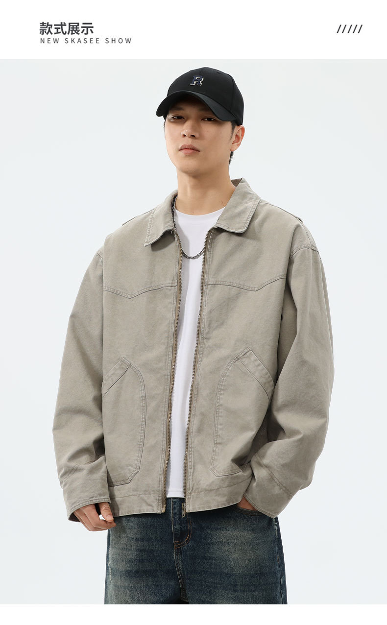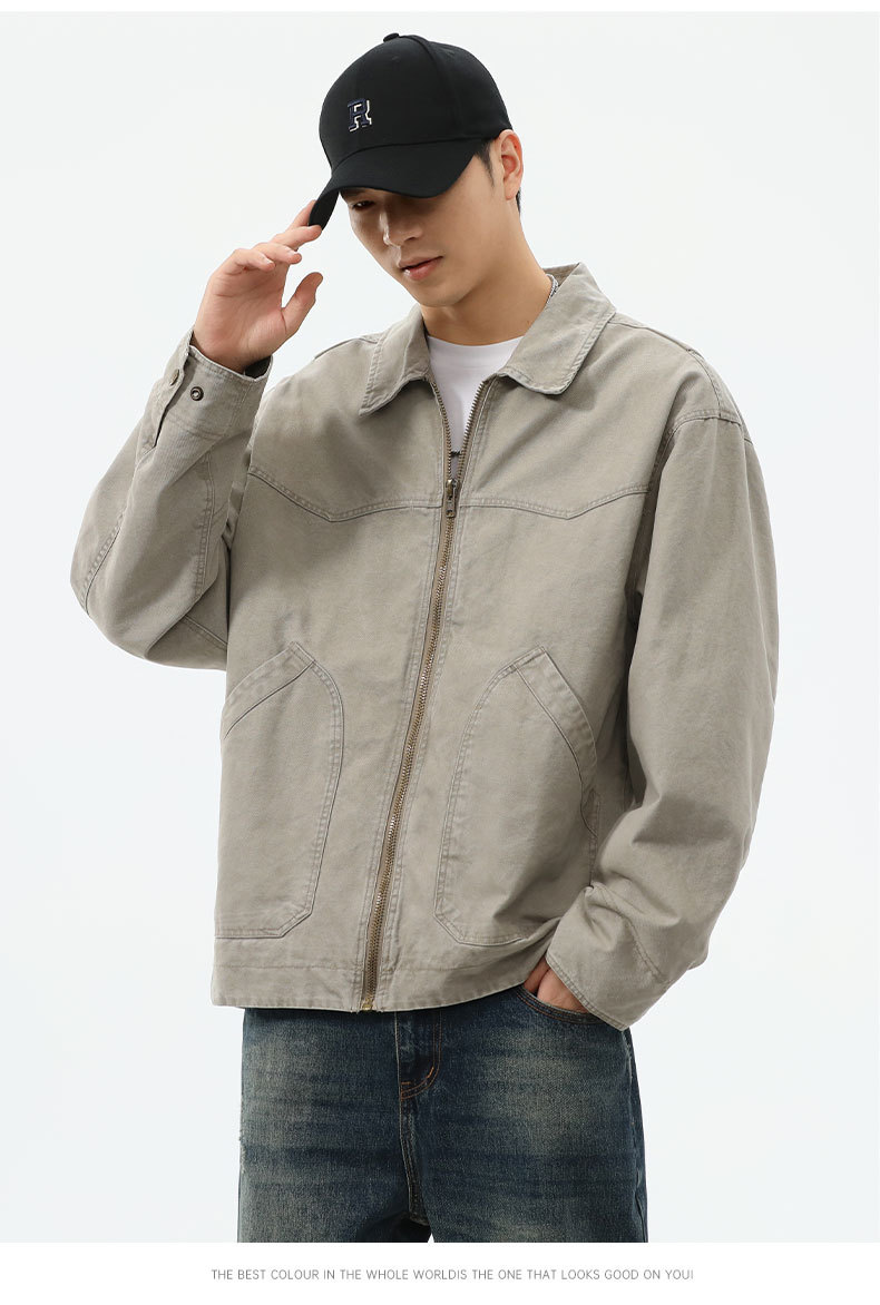 Muqiu 남성복 ∠ 미국 오토바이 구조 재킷 남성용 느슨한 랩 타이드 브랜드 캐주얼 통근 재킷 캐주얼 자켓스토어 가기