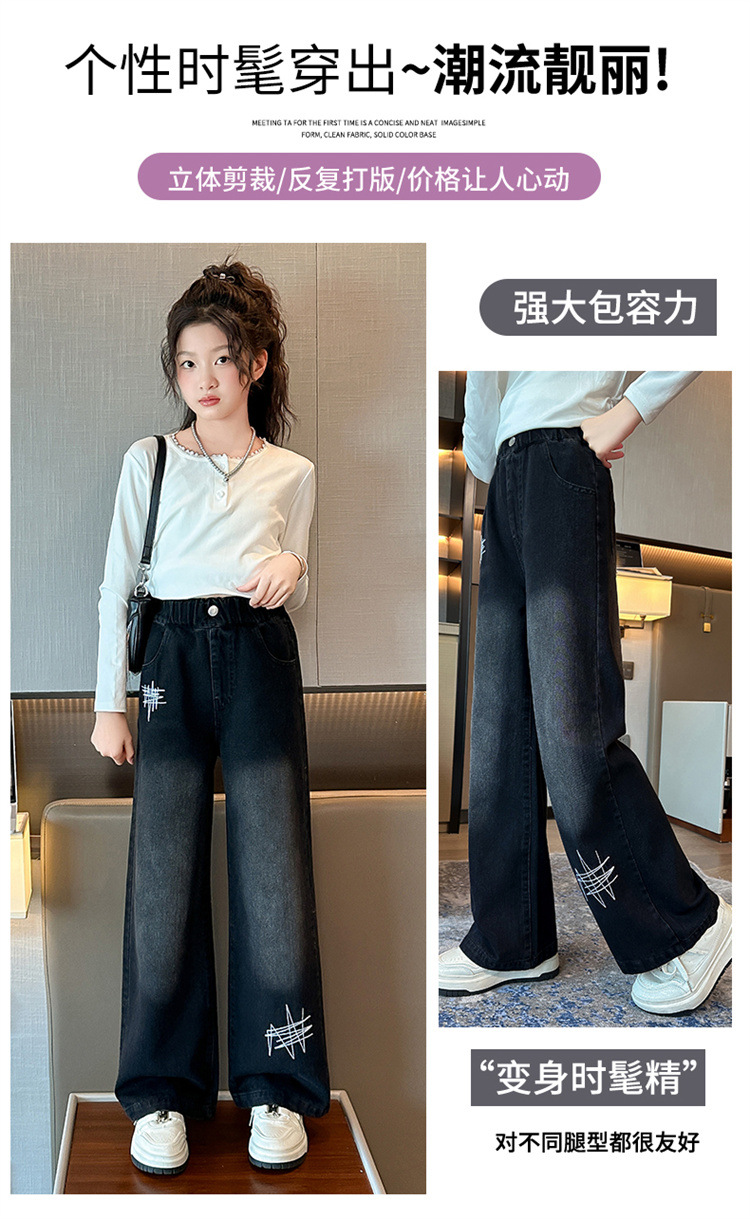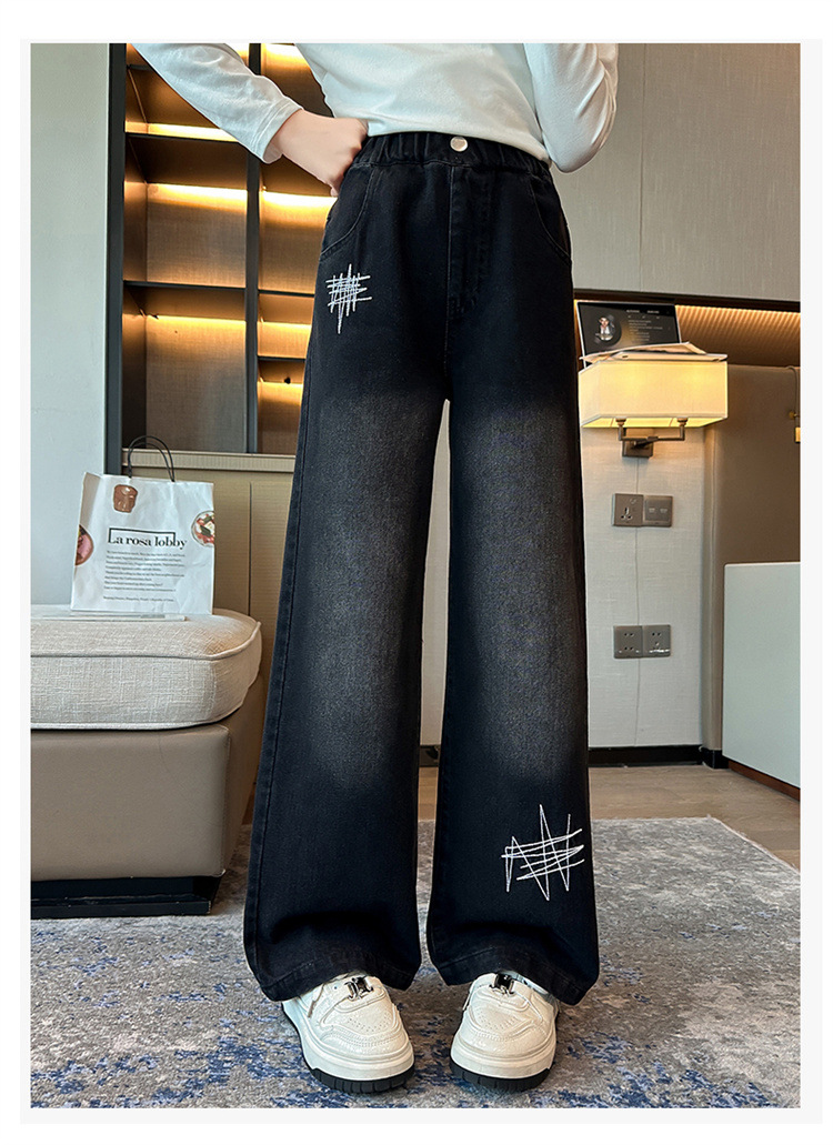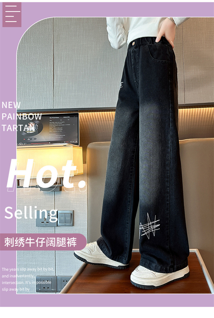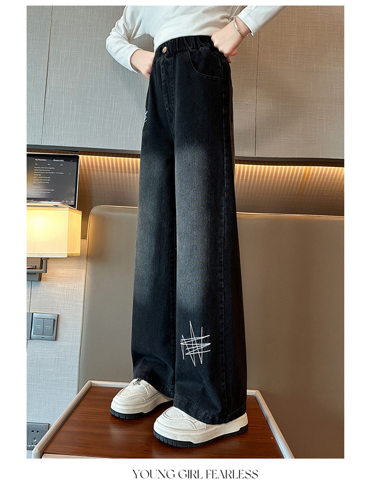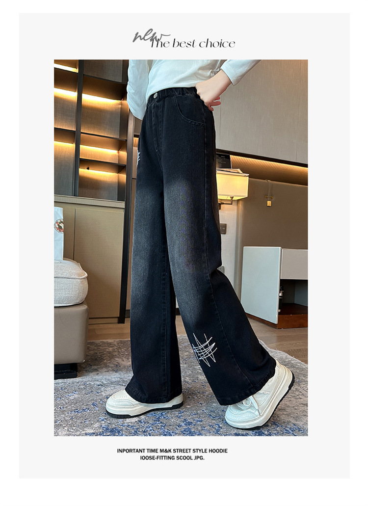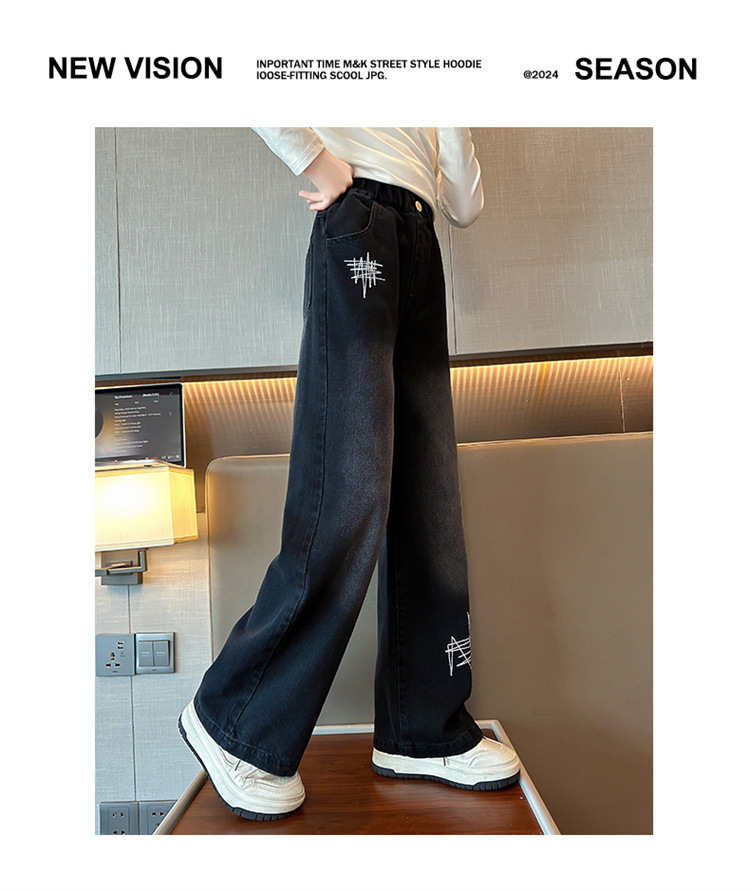 소녀 바지 봄과 가을 2024 새로운 가을 소녀 패션 서양 스타일 사이버 기념 스트레이트 다리 넓은 다리 청바지스토어 가기