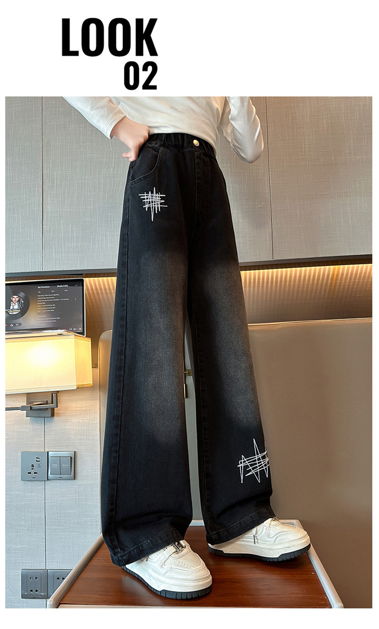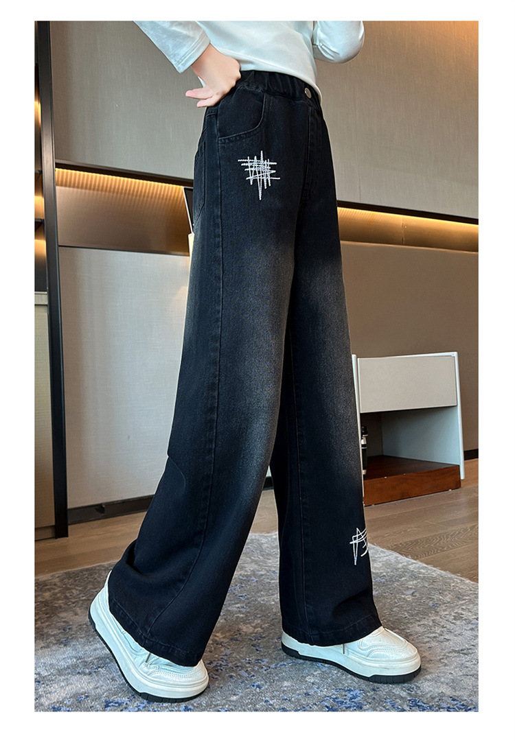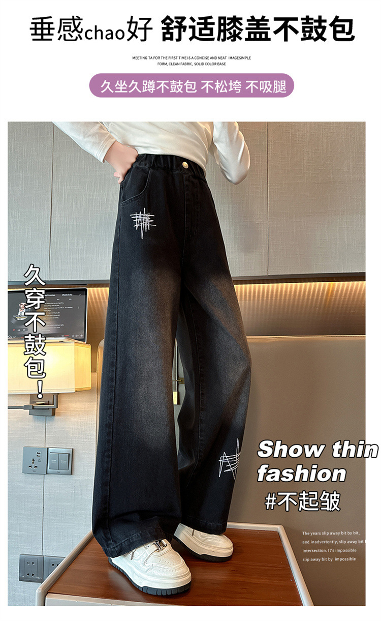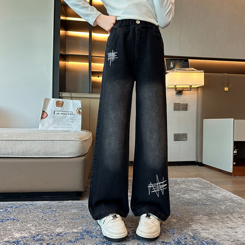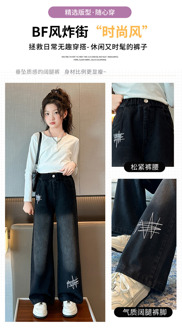 소녀 바지 봄과 가을 2024 새로운 가을 소녀 패션 서양 스타일 사이버 기념 스트레이트 다리 넓은 다리 청바지스토어 가기