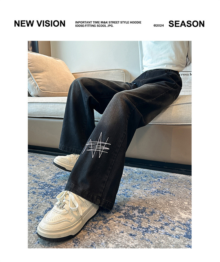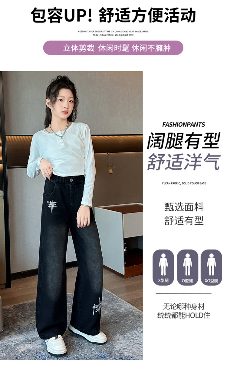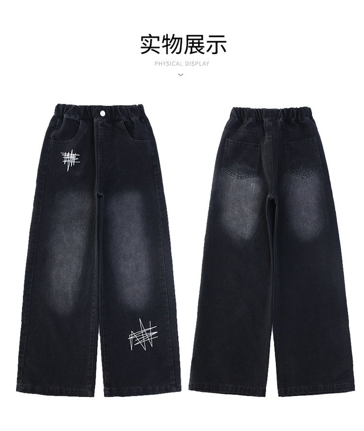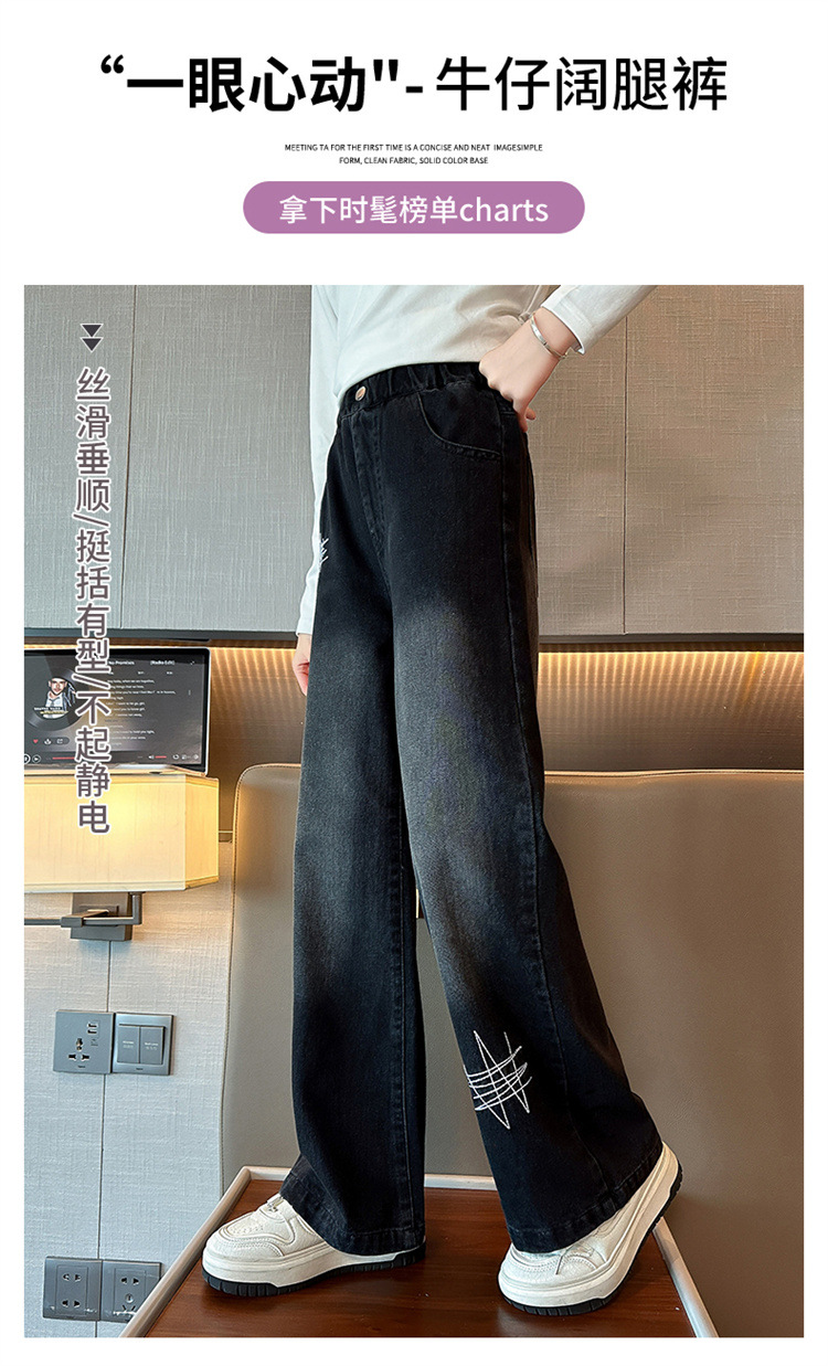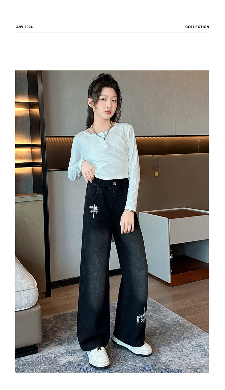 소녀 바지 봄과 가을 2024 새로운 가을 소녀 패션 서양 스타일 사이버 기념 스트레이트 다리 넓은 다리 청바지스토어 가기