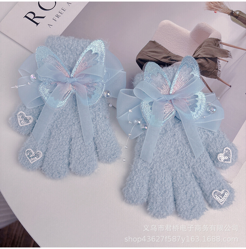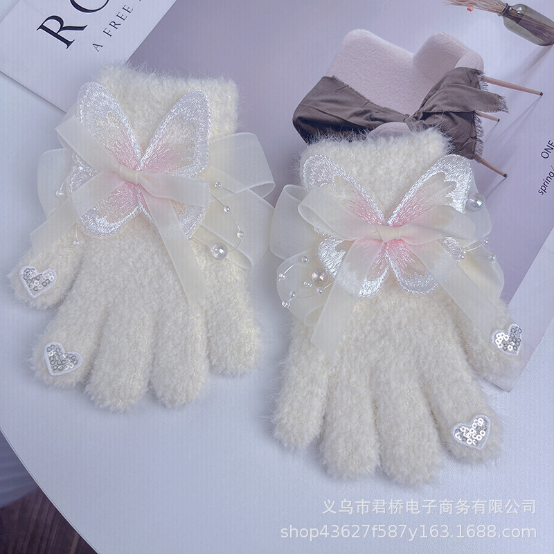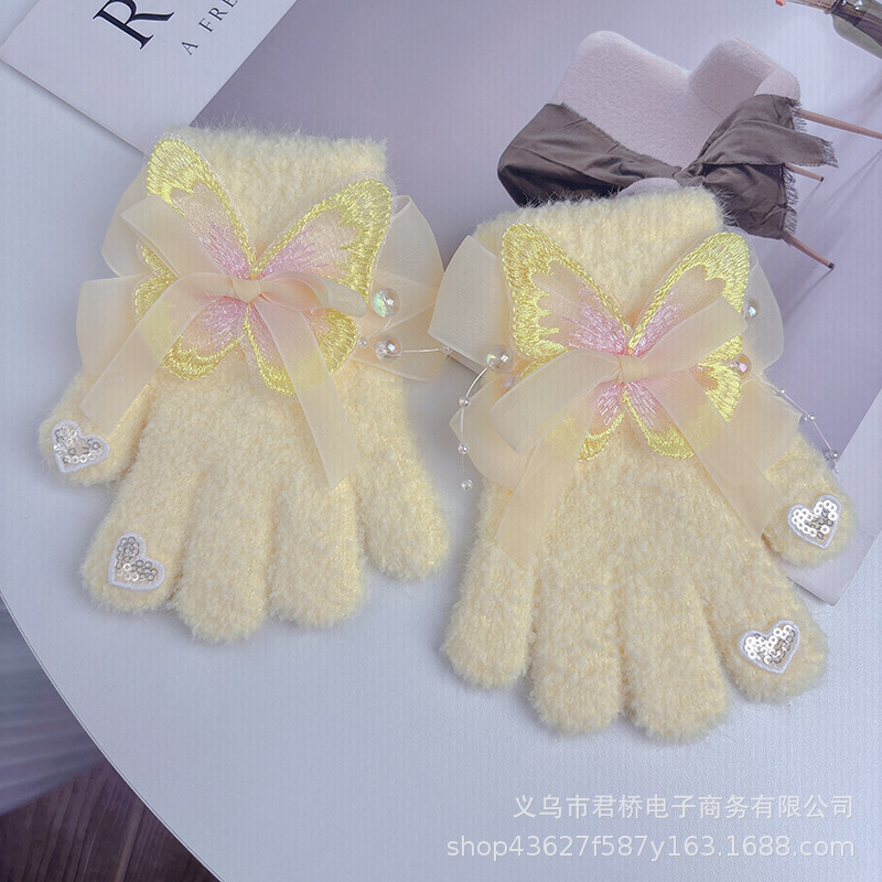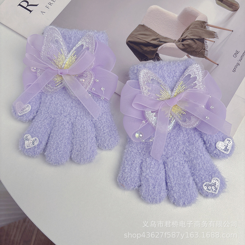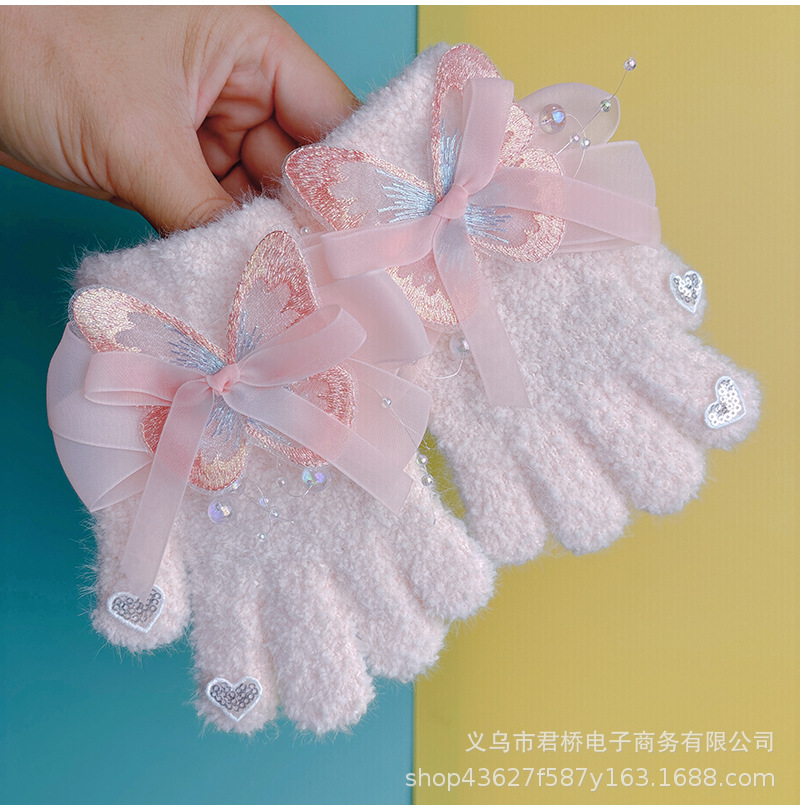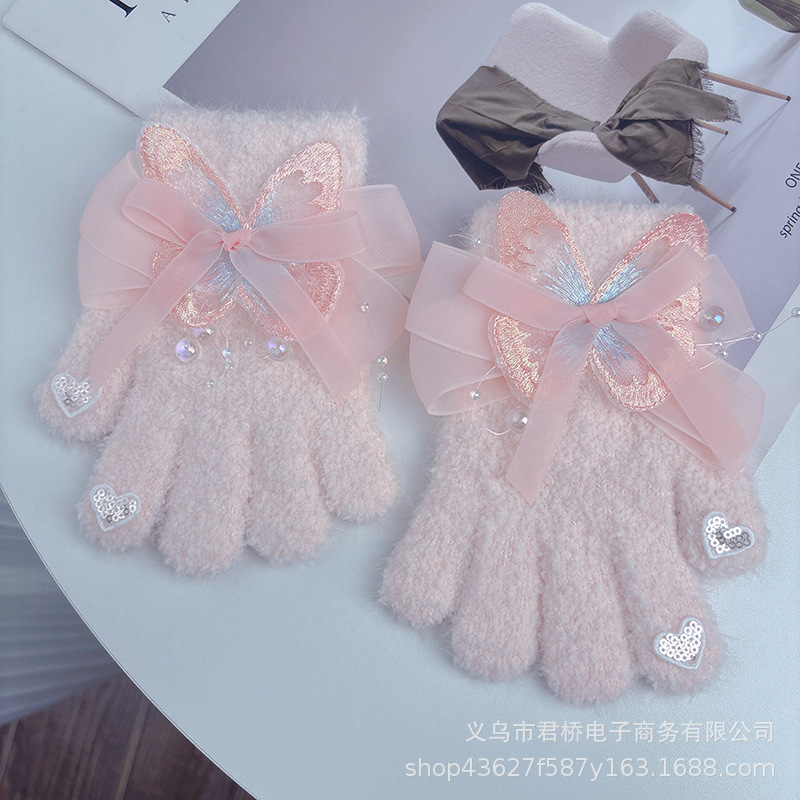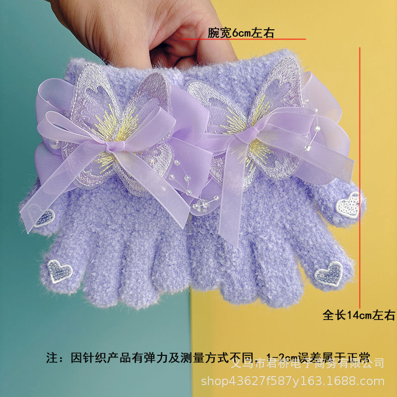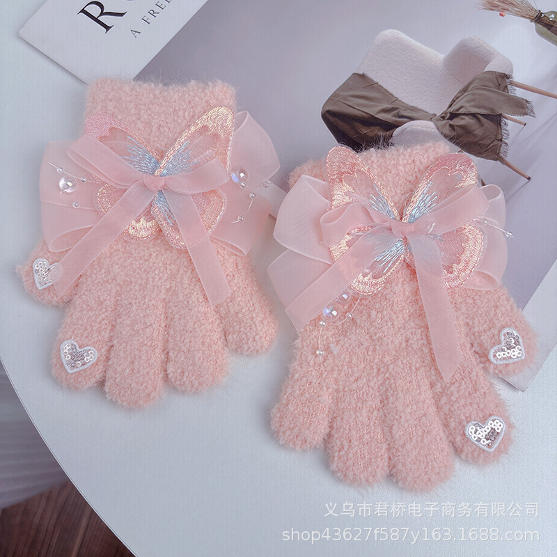 가을과 겨울 새로운 어린이 장갑 소녀 아기 3-6 세 따뜻한 감기 방지 귀여운 활 니트 모든 것을 포함하는 손가락스토어 가기