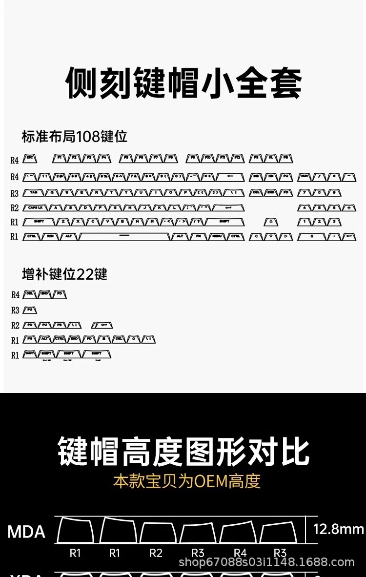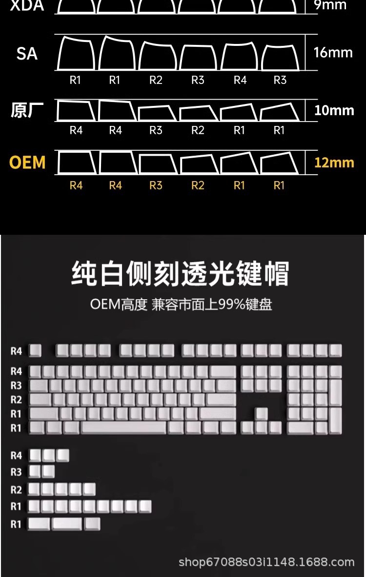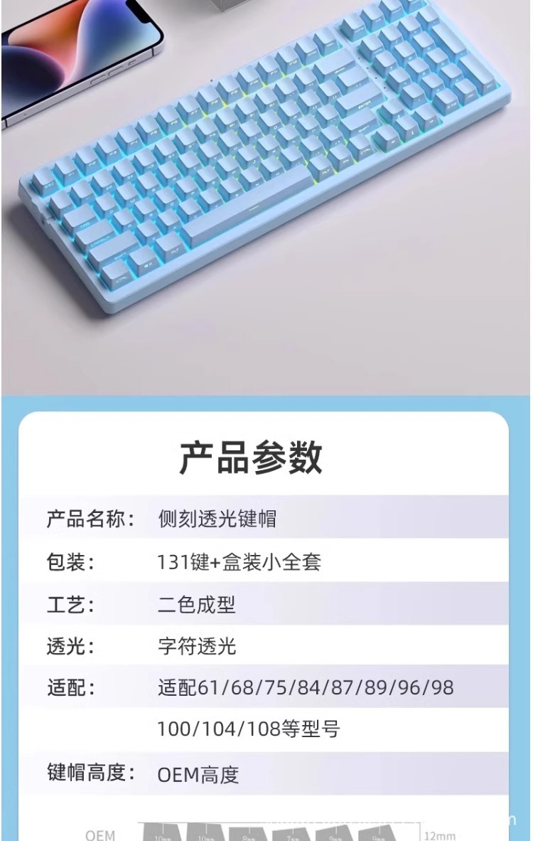 측면 새겨진 투명 키 캡 내마모성 131 키 성격 기계 키보드 diy 맞춤형 61/75/87/98