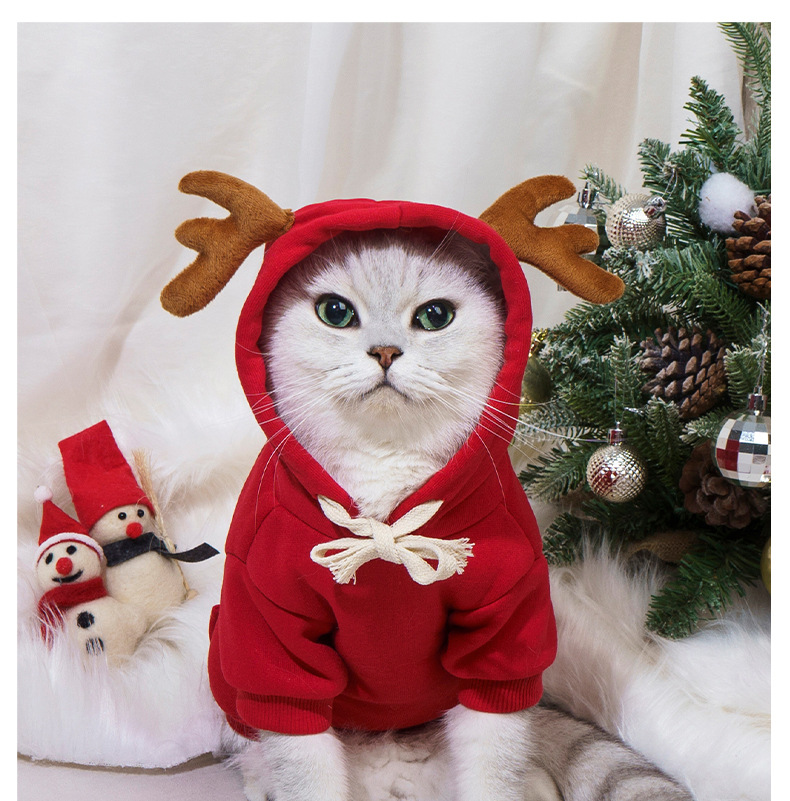크리스마스 인기 애완동물 의류, 강아지와 고양이 공용 사슴뿔 스웨트셔츠, 창의적인 의상, 고양이 엘크 코스프레 의상스토어 가기