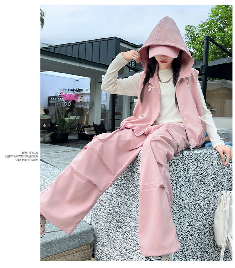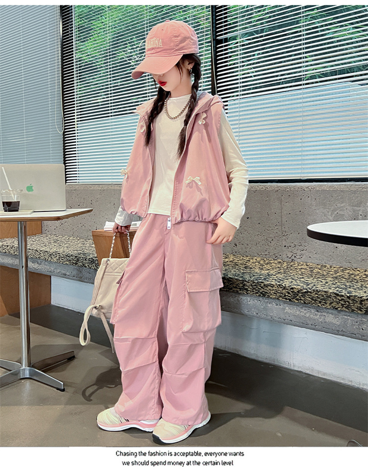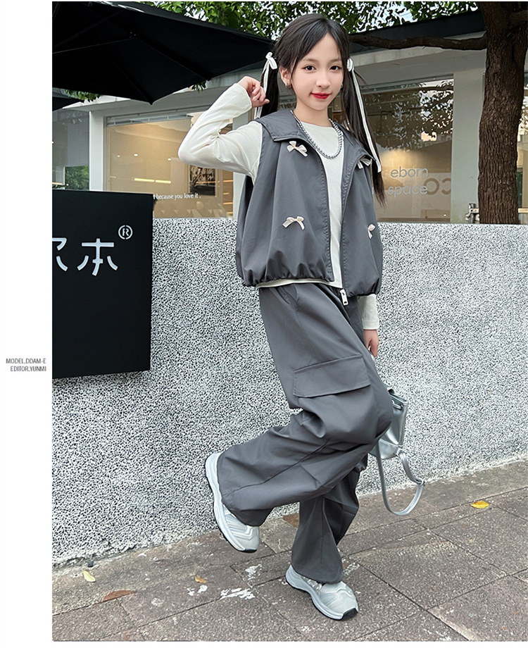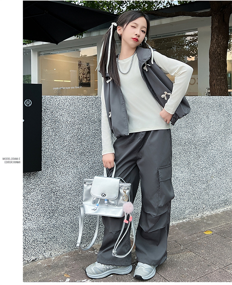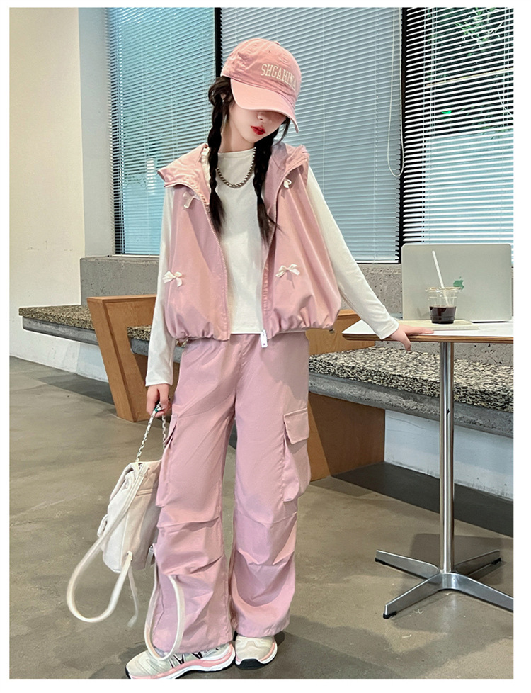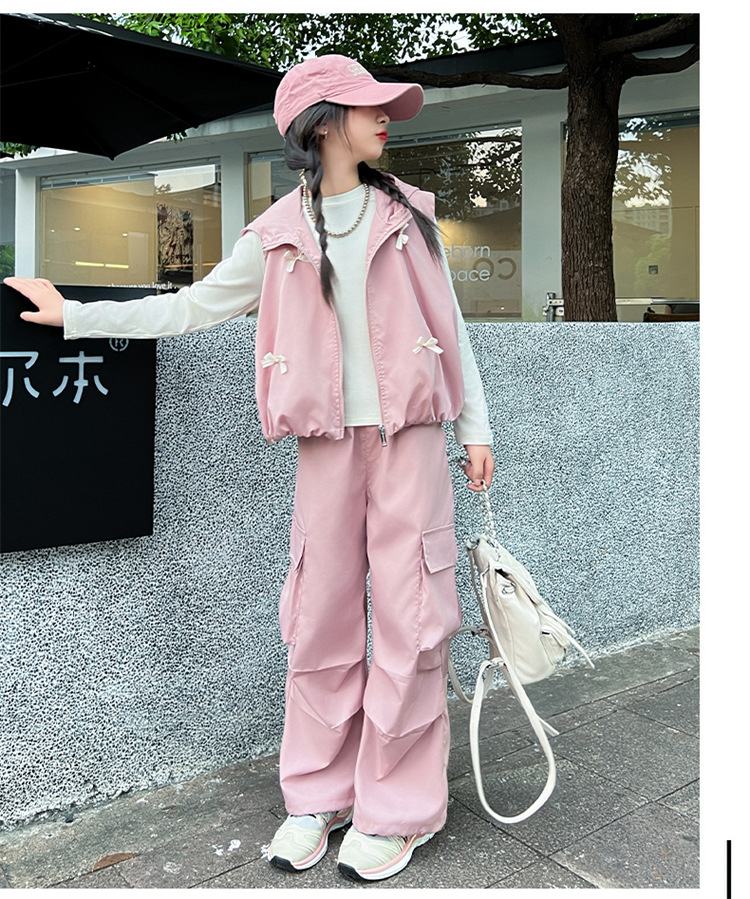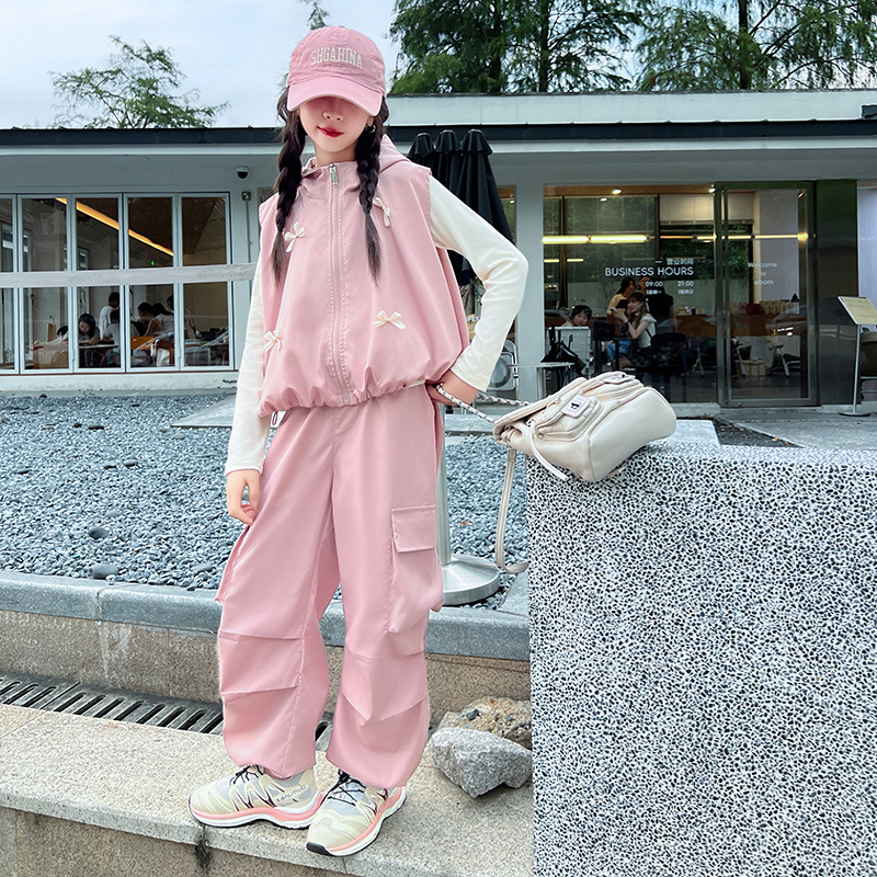 소녀 후드 양복 조끼 바지 3 종 세트 봄과 가을 2024 새로운 중대형 어린이 패션 멋진 외국 스타일 세트 패션스토어 가기