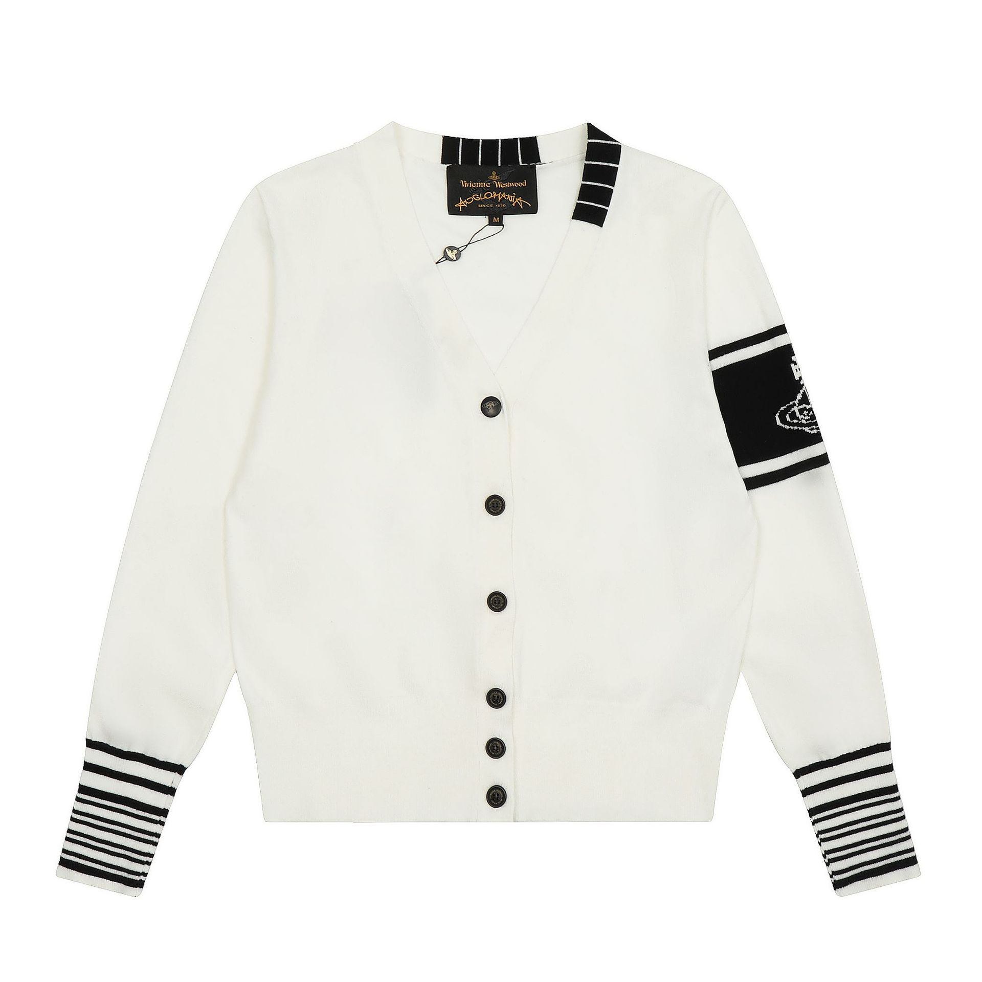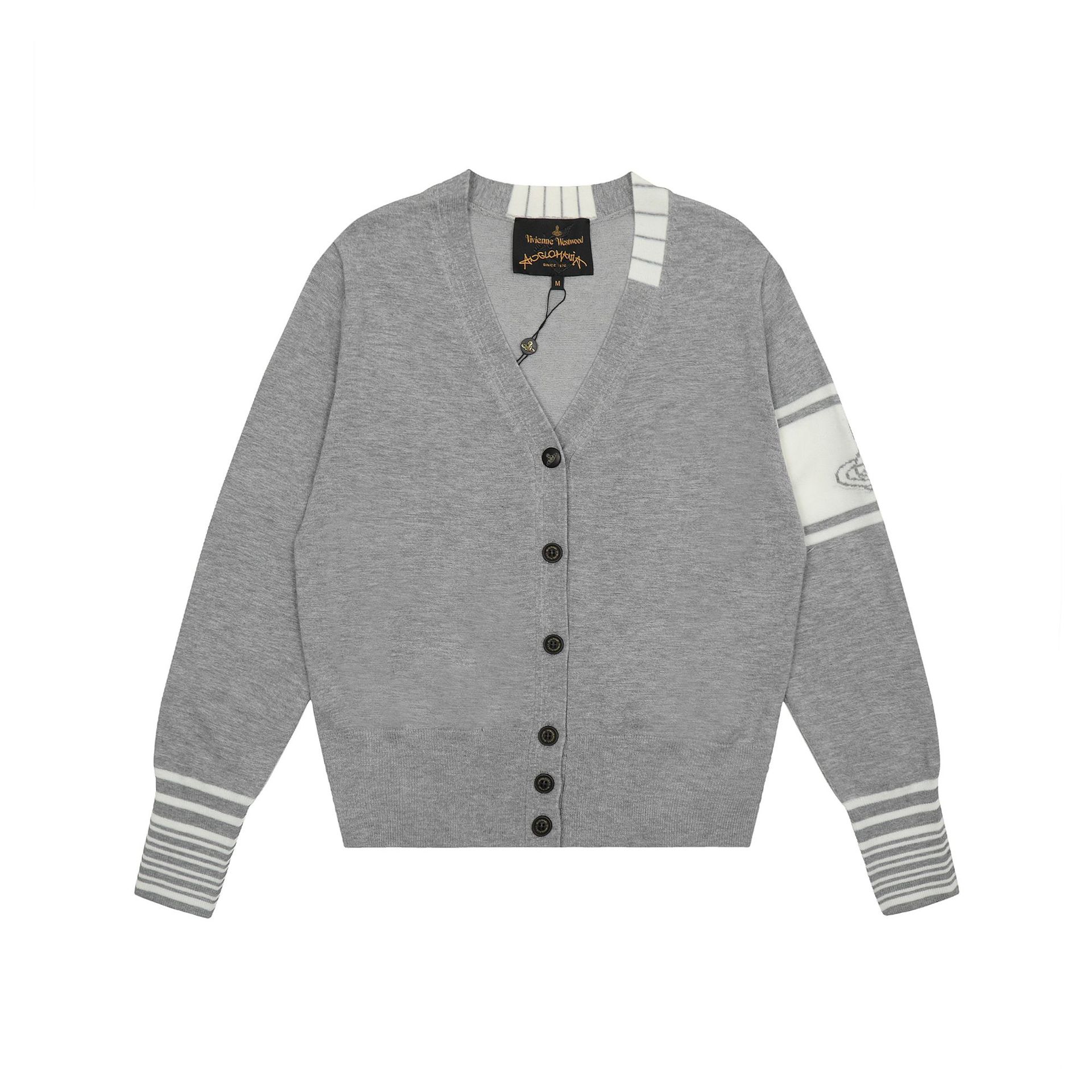 ViVienneWestwood 여왕 어머니 Vivian Jacquard 줄무늬 대비 여성 니트 카디건 스웨터 재킷스토어 가기