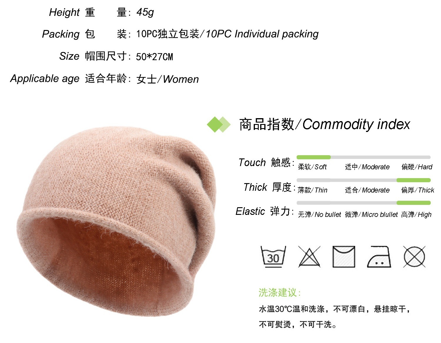 • 모자 둘레 50*27cm, 단일 무게 45g