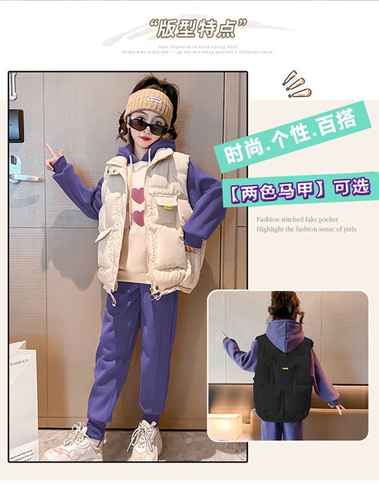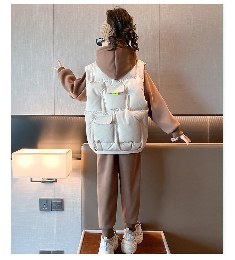 소녀 가을과 겨울 새로운 스포츠 외부 착용 조끼 2024 겨울 소녀 중 큰 어린이 캐주얼 느슨한 면 조끼스토어 가기