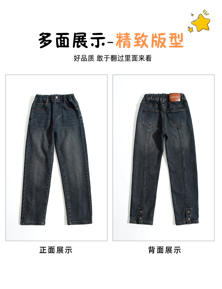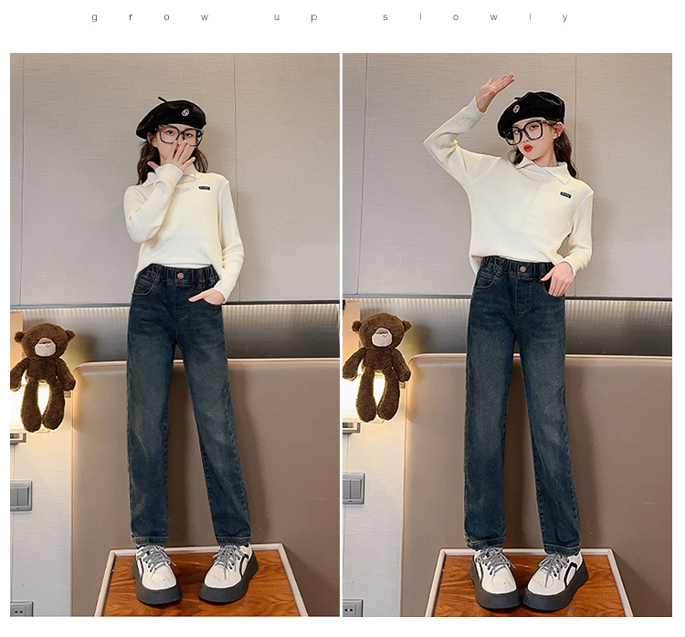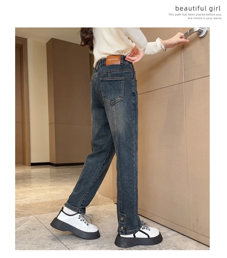 소녀 청바지 기모 가을과 겨울 2024 새로운 스타일의 중대형 어린이 캐주얼 바지스토어 가기