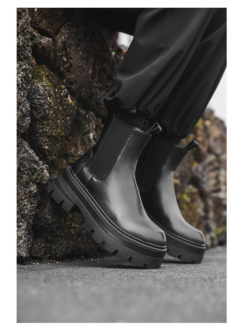 첼시 부츠 남성 가을 두꺼운 영국 스타일 내부 높이 증가 빈티지 작업복 캐주얼 마틴 부츠 남성 부츠 더비 부츠스토어 가기