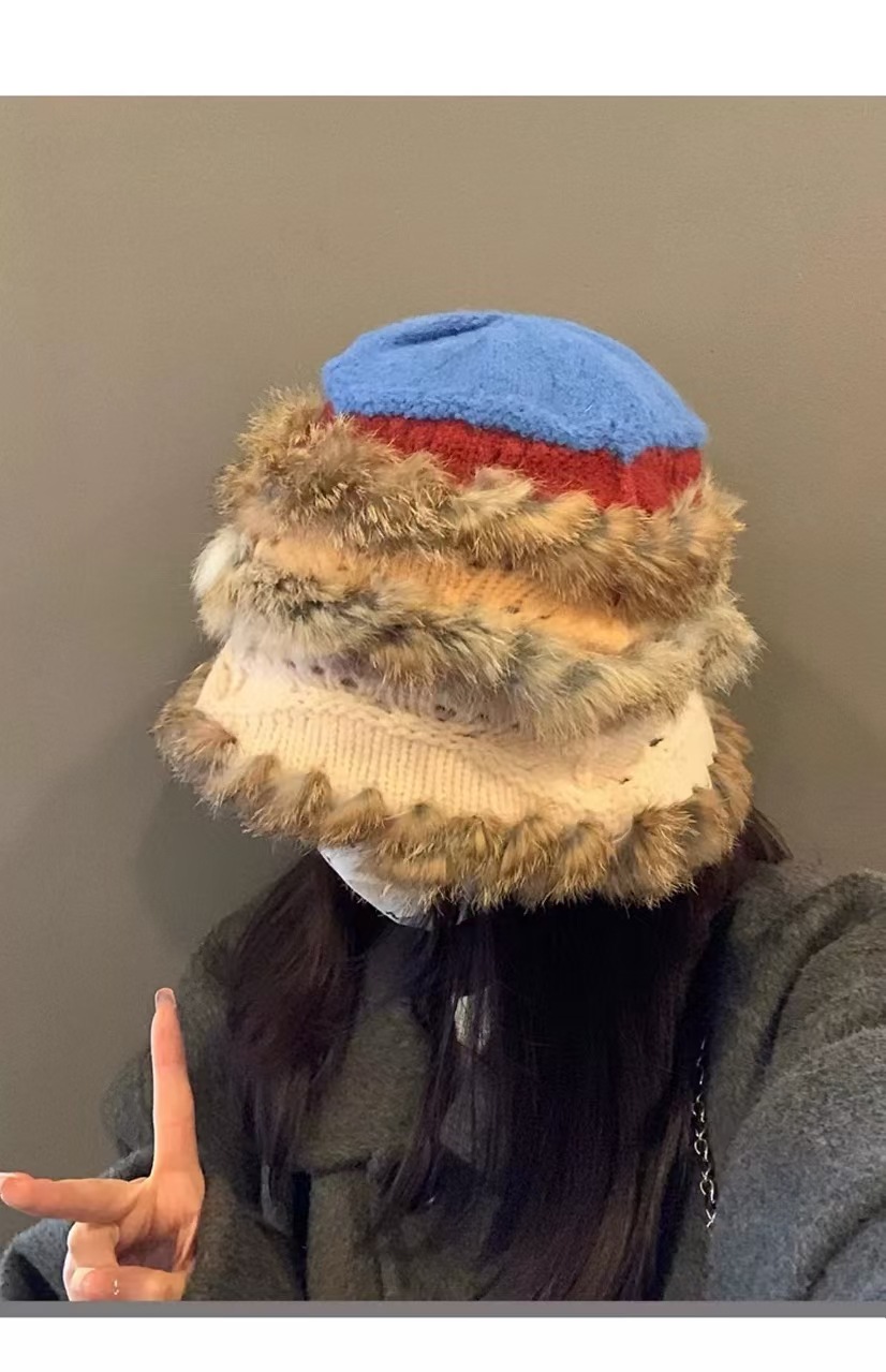 두꺼운 봉제 니트 모자 여성의 가을과 겨울 방한 양모 모자 따뜻한 귀 보호 얼굴 작은 한국 버전 큰 머리