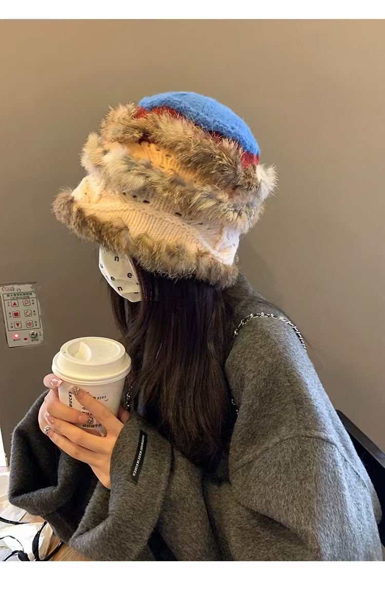 두꺼운 봉제 니트 모자 여성의 가을과 겨울 방한 양모 모자 따뜻한 귀 보호 얼굴 작은 한국 버전 큰 머리스토어 가기