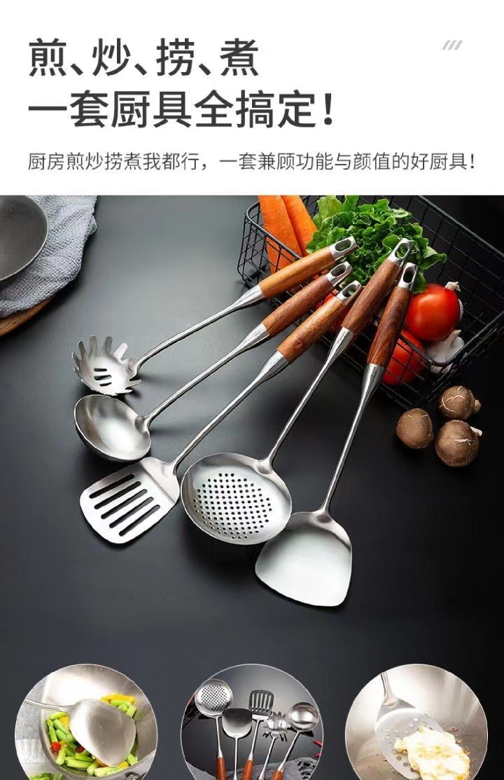 화려한 나무 손잡이 주방용품, 요리용 나무 손잡이 스테인리스 주걱, 두꺼운 주방 요리용 숟가락 및 주걱 세트 제조업체스토어 가기