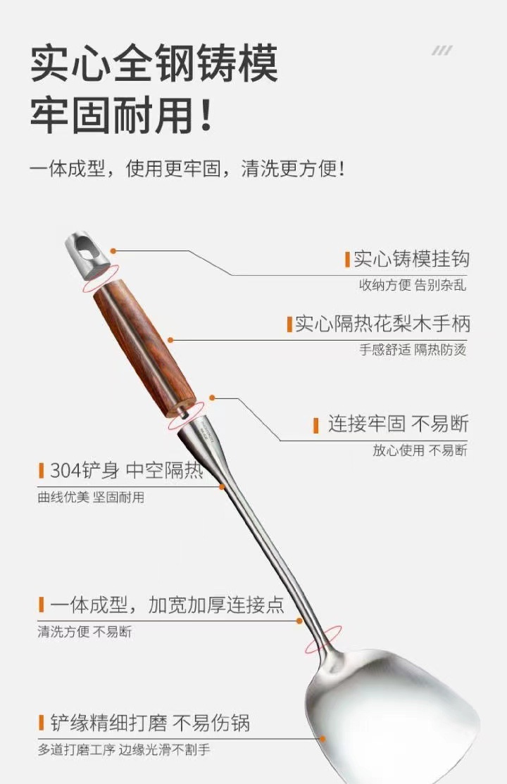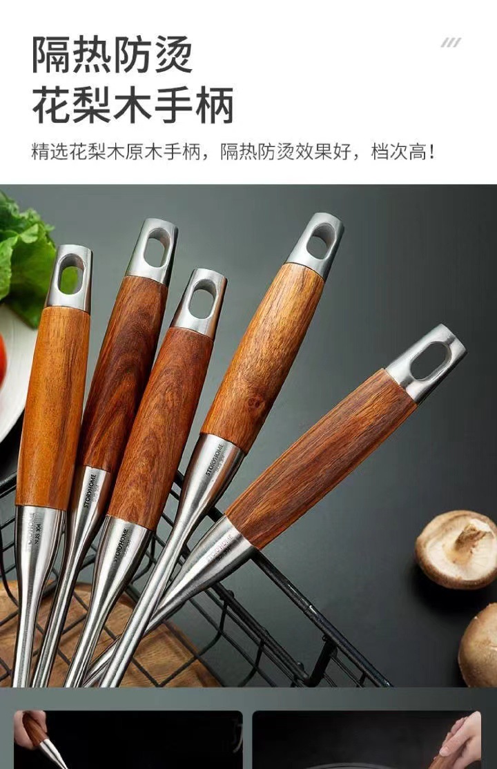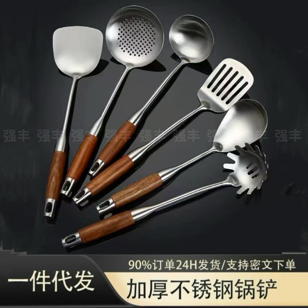 화려한 나무 손잡이 주방용품, 요리용 나무 손잡이 스테인리스 주걱, 두꺼운 주방 요리용 숟가락 및 주걱 세트 제조업체