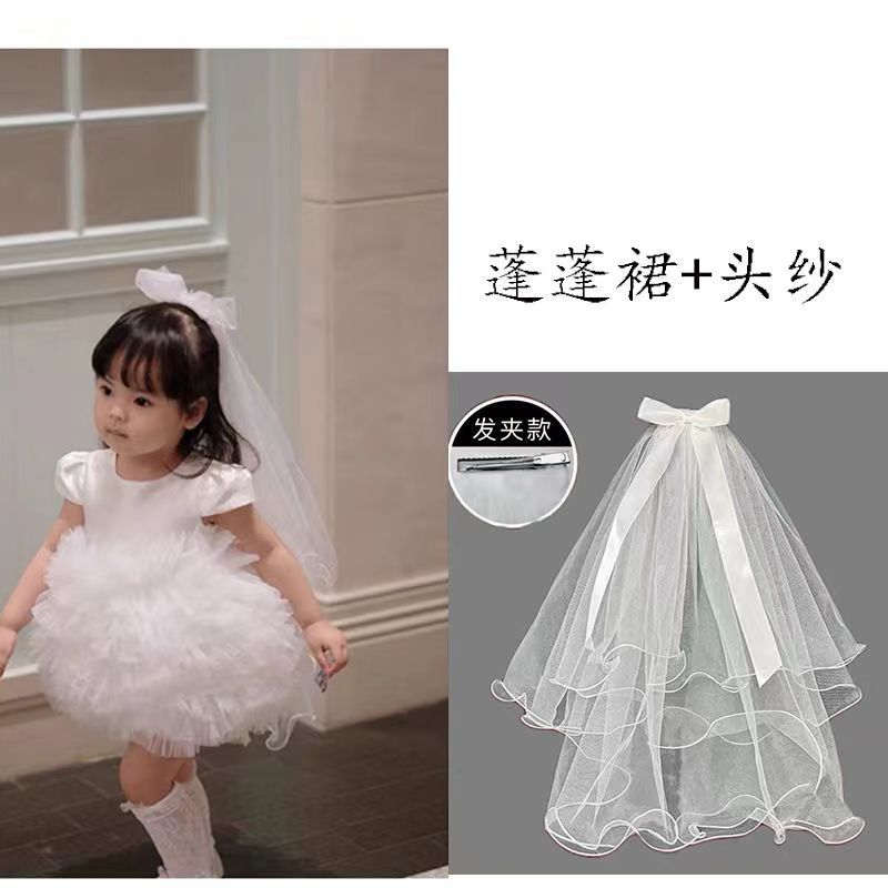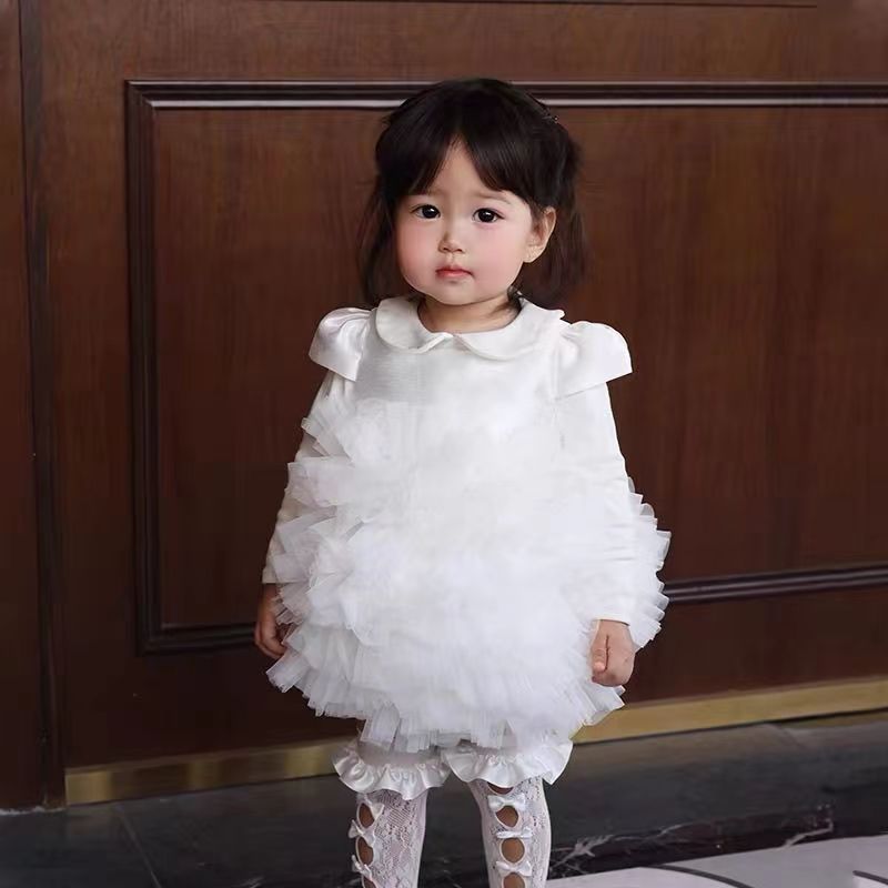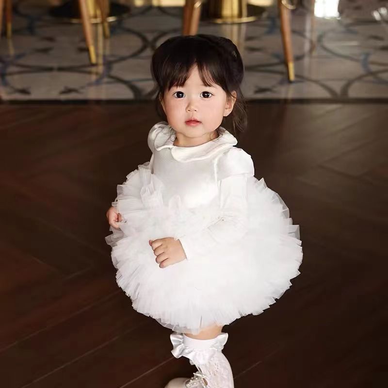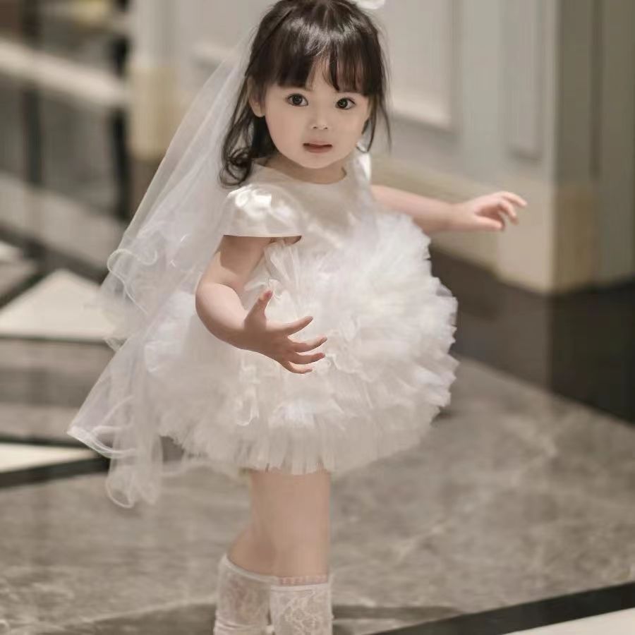 고급 흰색 소녀의 첫 번째 생일 꽃 소녀 결혼식 원피스 여성 보물 공주 투투 스커트는 사계절에 착용 할 수 있습니다