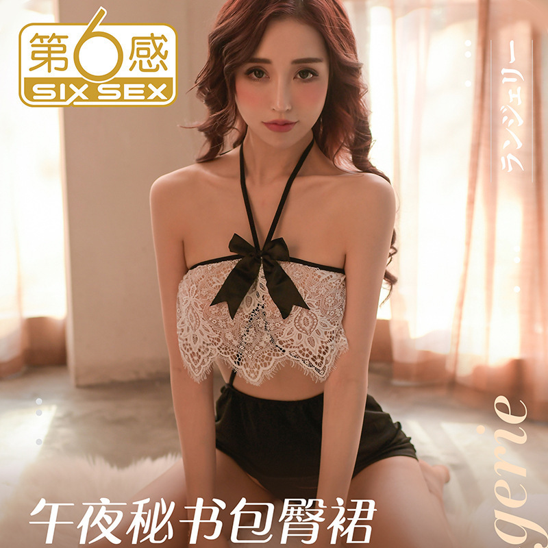 6번째 감성 레이스 속옷, 엉덩이를 덮는 메쉬 서스펜더 잠옷, 섹시한 간호사 유니폼, 검은색 메이드 유혹 의상스토어 가기