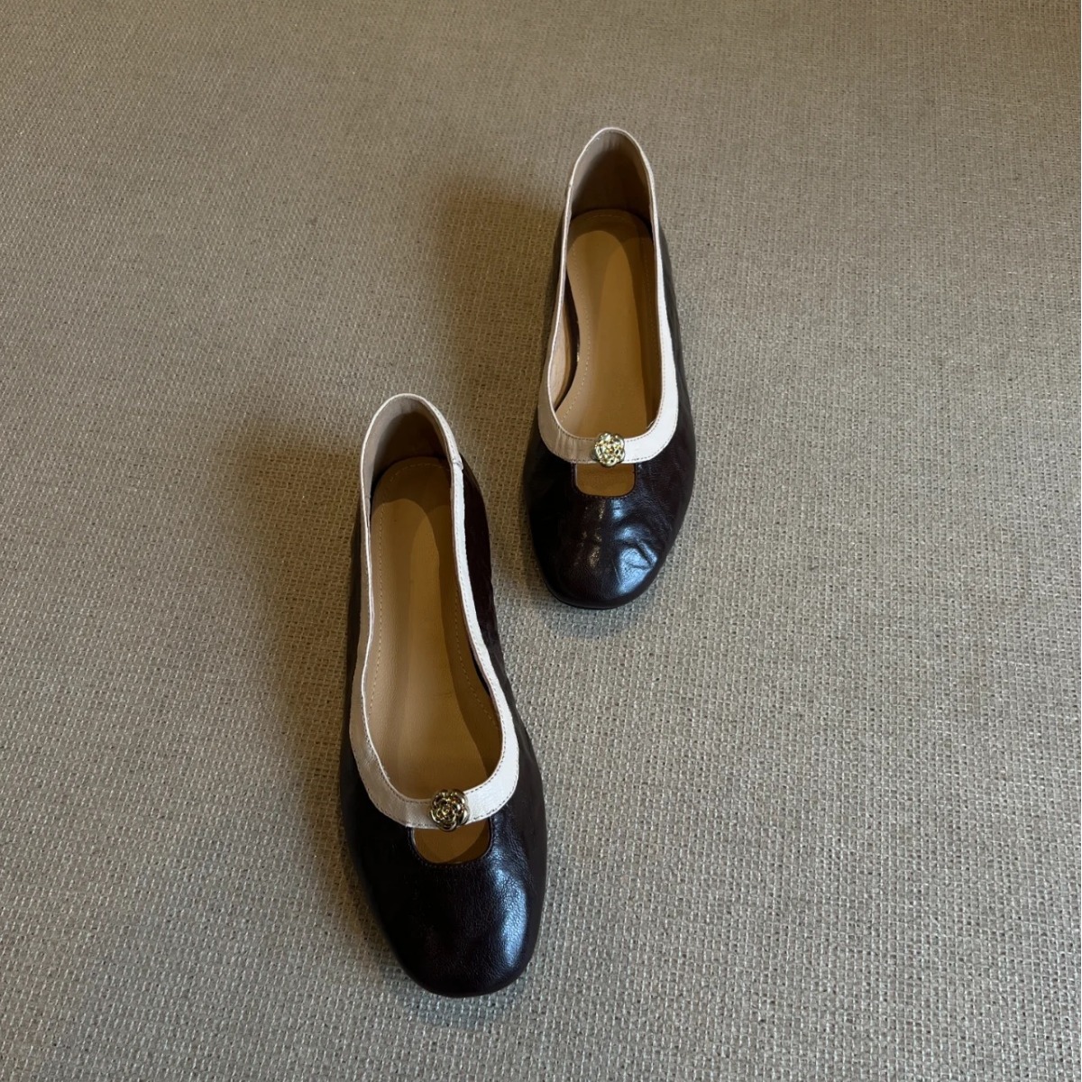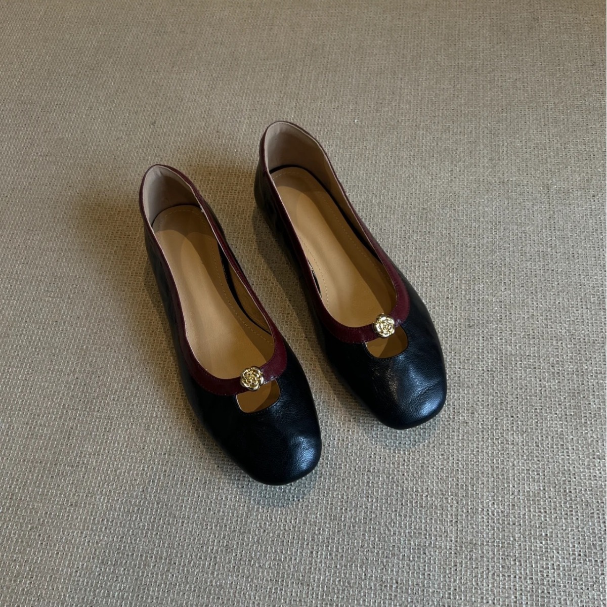 양가죽 버전 ~ 작은 동백 플랫 신발 여성 프랑스 복고풍 얕은 입 둥근 머리 작은 향기로운 스타일 메리 제인 신발스토어 가기