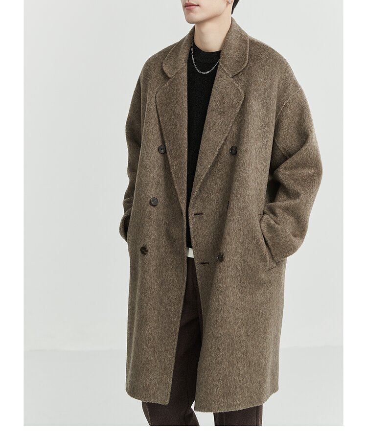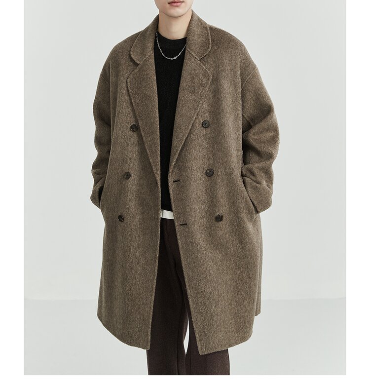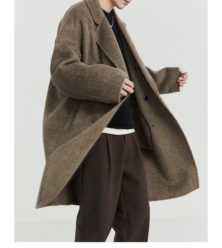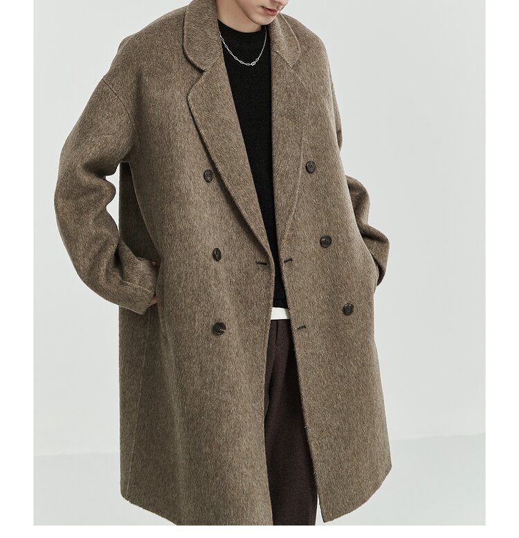 디자인감 있는 양면 울 코트 남성용 중간 길이 겨울 신상품 한국 스타일 두꺼운 울 코트스토어 가기
