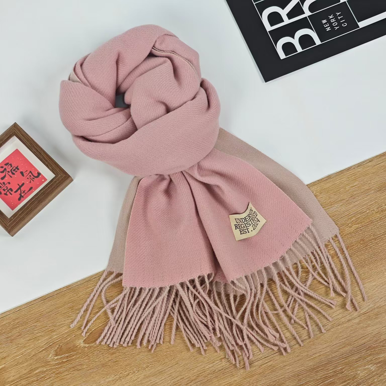 2024 새로운 양면 단색 스카프 여성의 가을과 겨울 두꺼운 모조 캐시미어 스카프 부드러운 스타일 일본 스타일 술 목도리스토어 가기