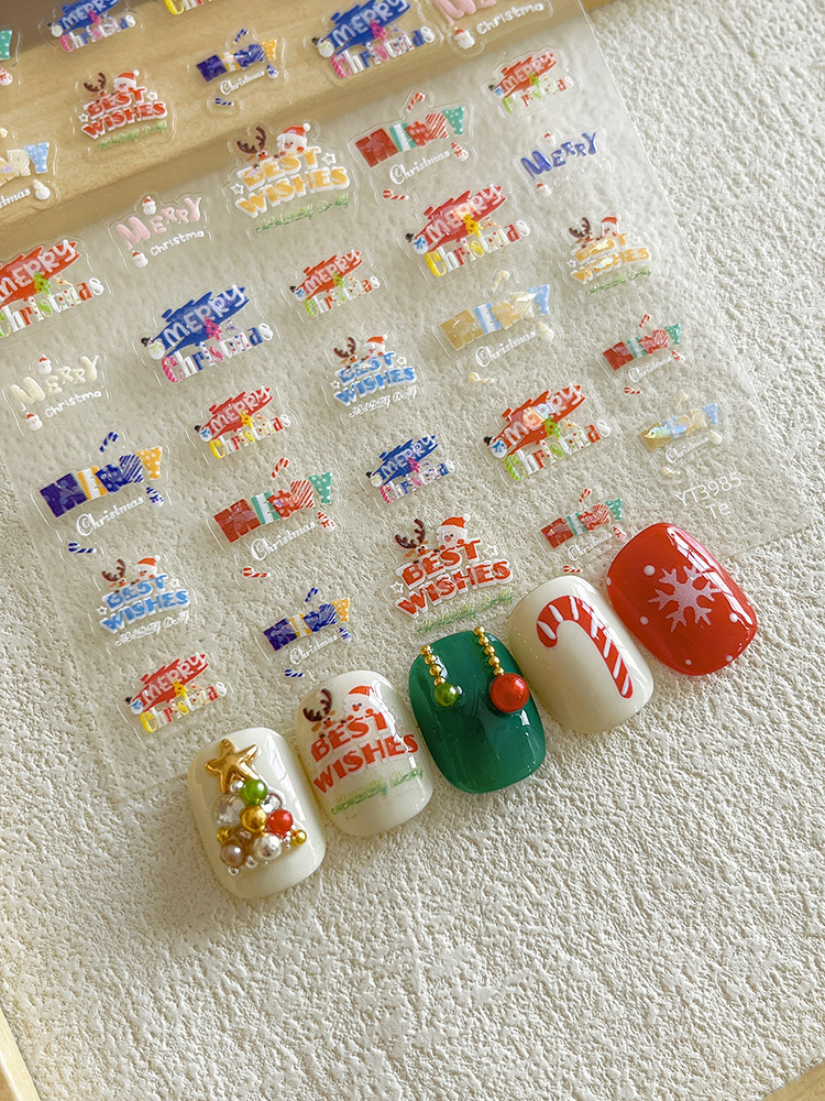 YITU 개미 그림 크리스마스 네일 아트 스티커 귀여운 엘크 접착 쉘 라이트 네일 장식 YT3985스토어 가기