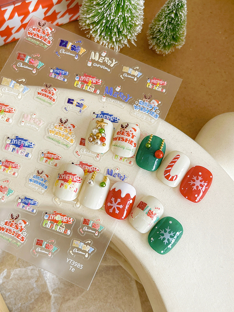 YITU 개미 그림 크리스마스 네일 아트 스티커 귀여운 엘크 접착 쉘 라이트 네일 장식 YT3985