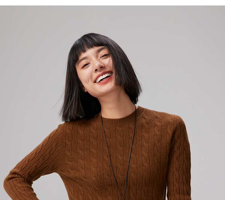 따뜻한 순수 클래식 작은 트위스트 100 메리노 울 크루 넥 스웨터 겨울 짠 탑