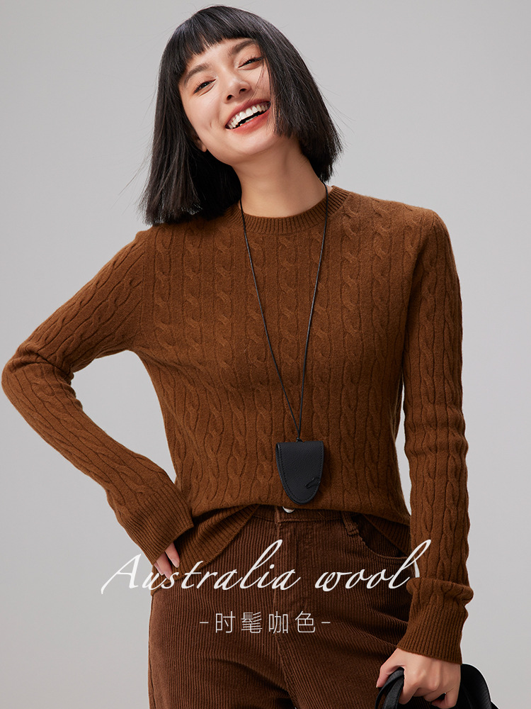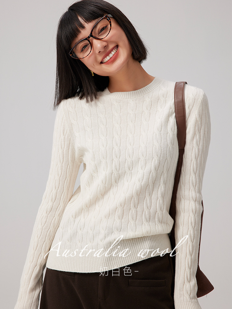 따뜻한 순수 클래식 작은 트위스트 100 메리노 울 크루 넥 스웨터 겨울 짠 탑스토어 가기