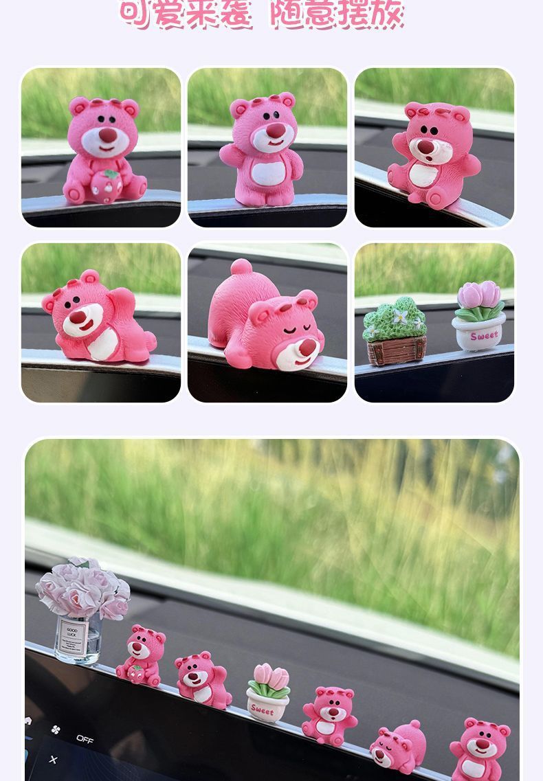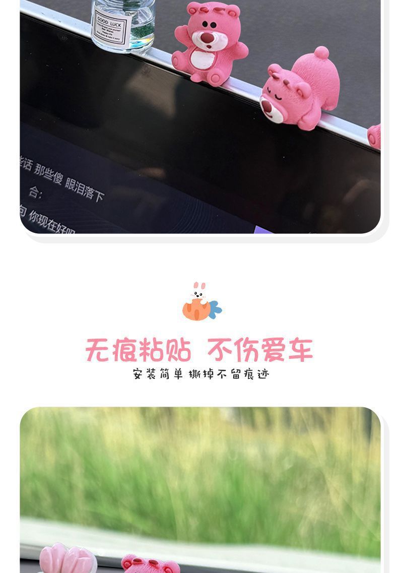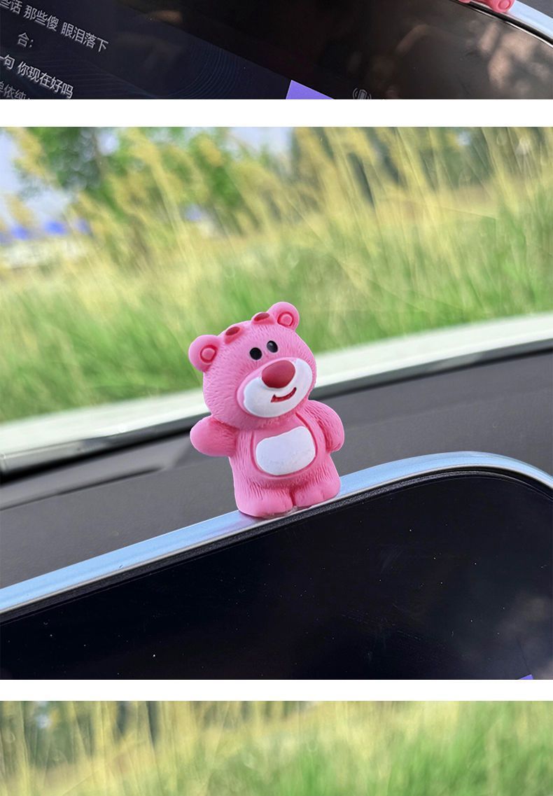 자동차 장식품 귀여운 딸기 곰 중앙 제어 화면 압축 작은 인형 자동차 액세서리 2024 새로운 그물 빨간색 장식스토어 가기