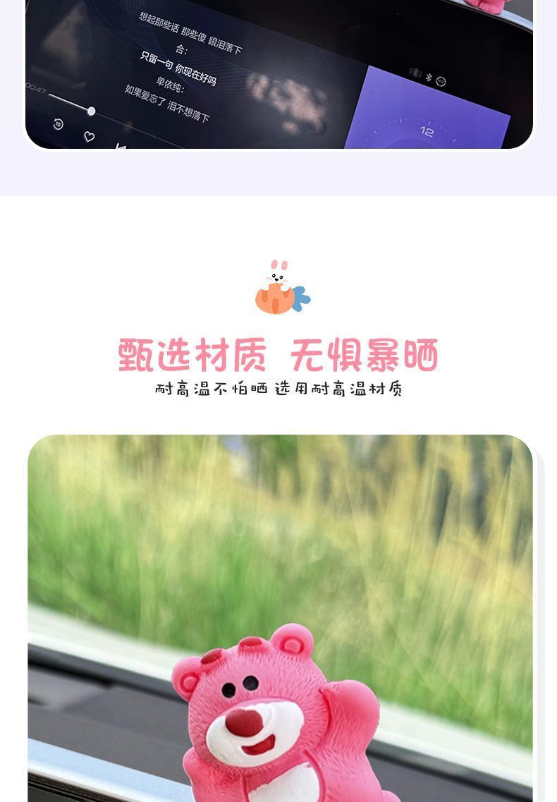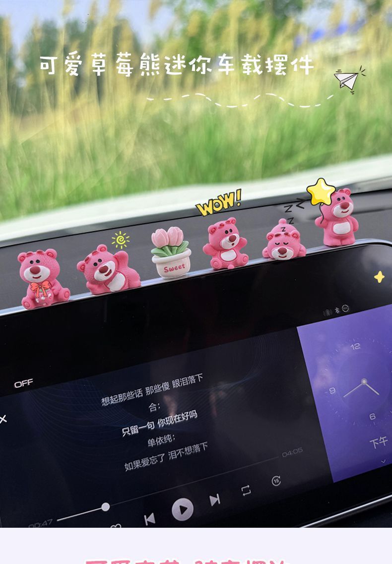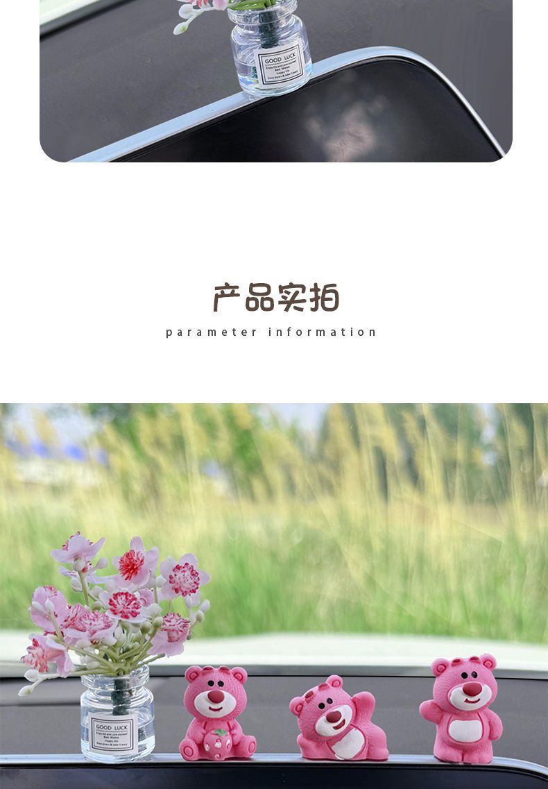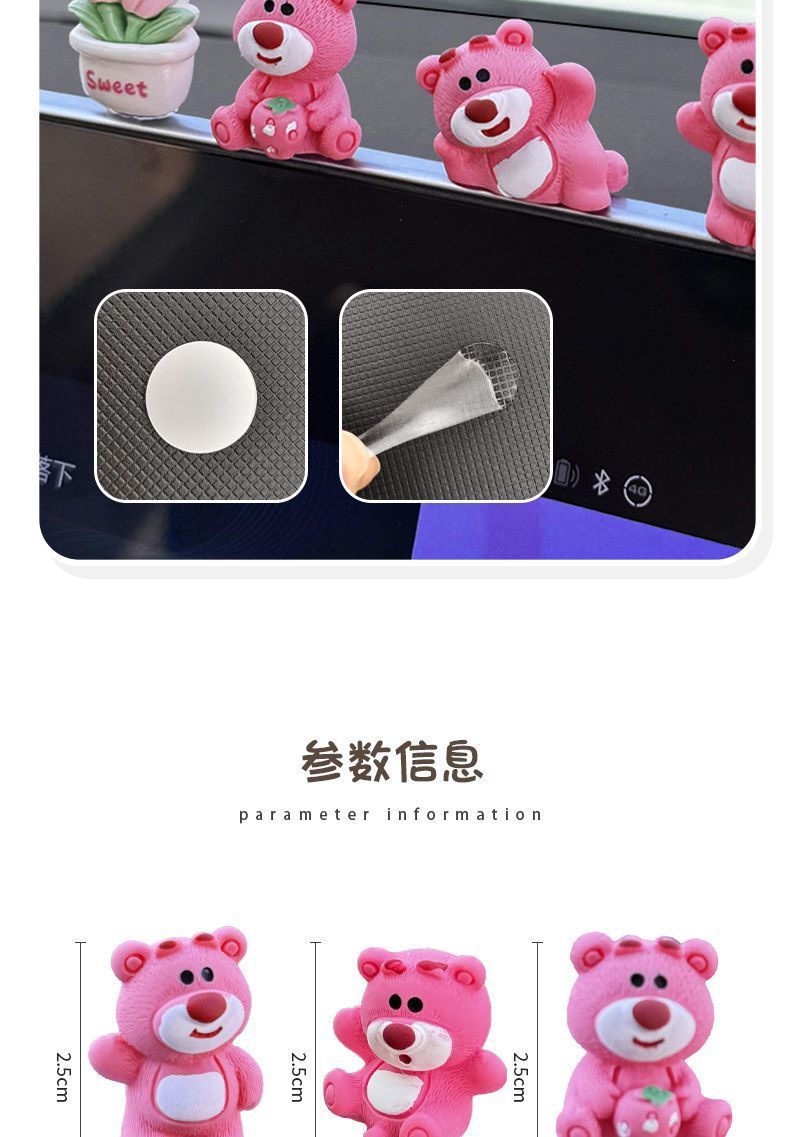 자동차 장식품 귀여운 딸기 곰 중앙 제어 화면 압축 작은 인형 자동차 액세서리 2024 새로운 그물 빨간색 장식스토어 가기