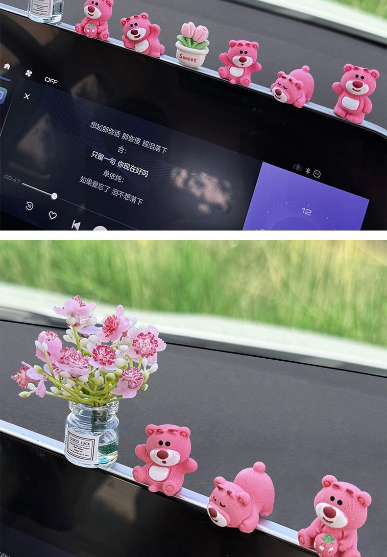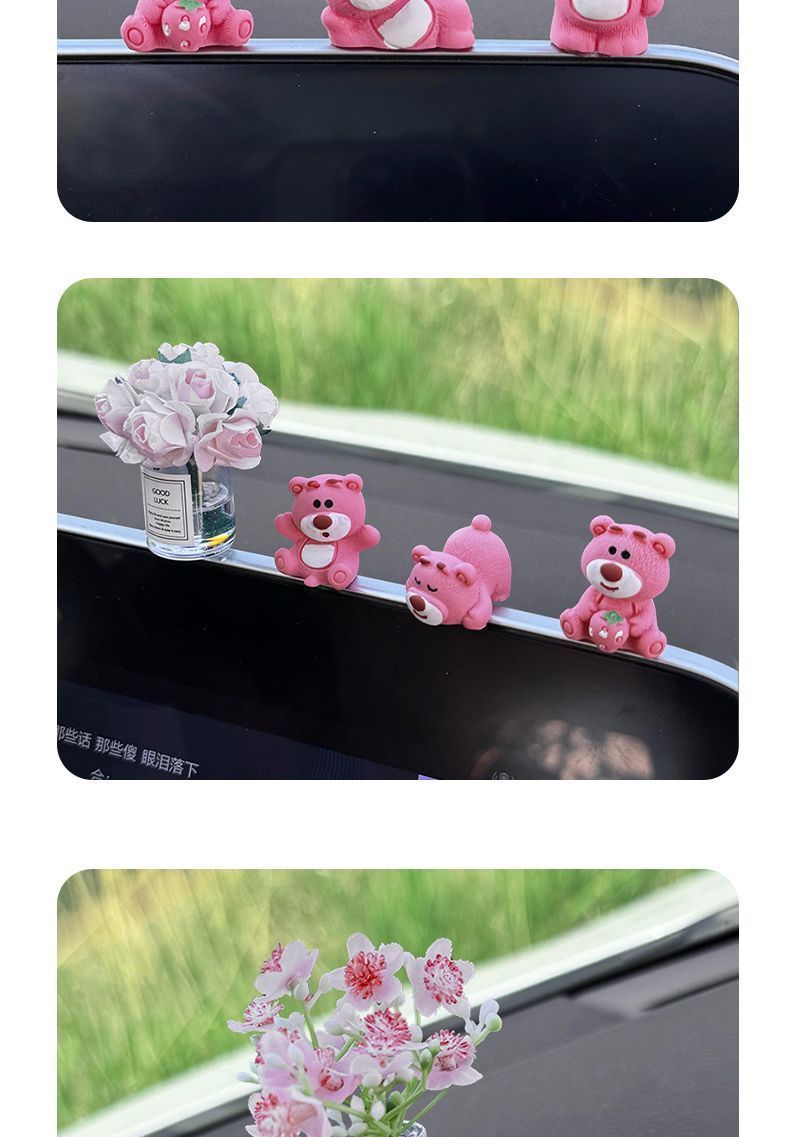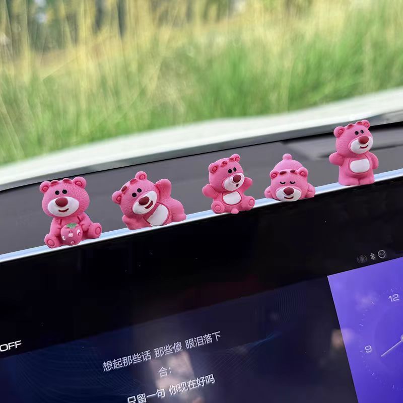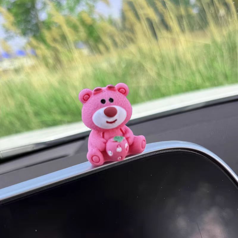 자동차 장식품 귀여운 딸기 곰 중앙 제어 화면 압축 작은 인형 자동차 액세서리 2024 새로운 그물 빨간색 장식