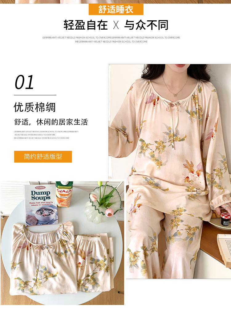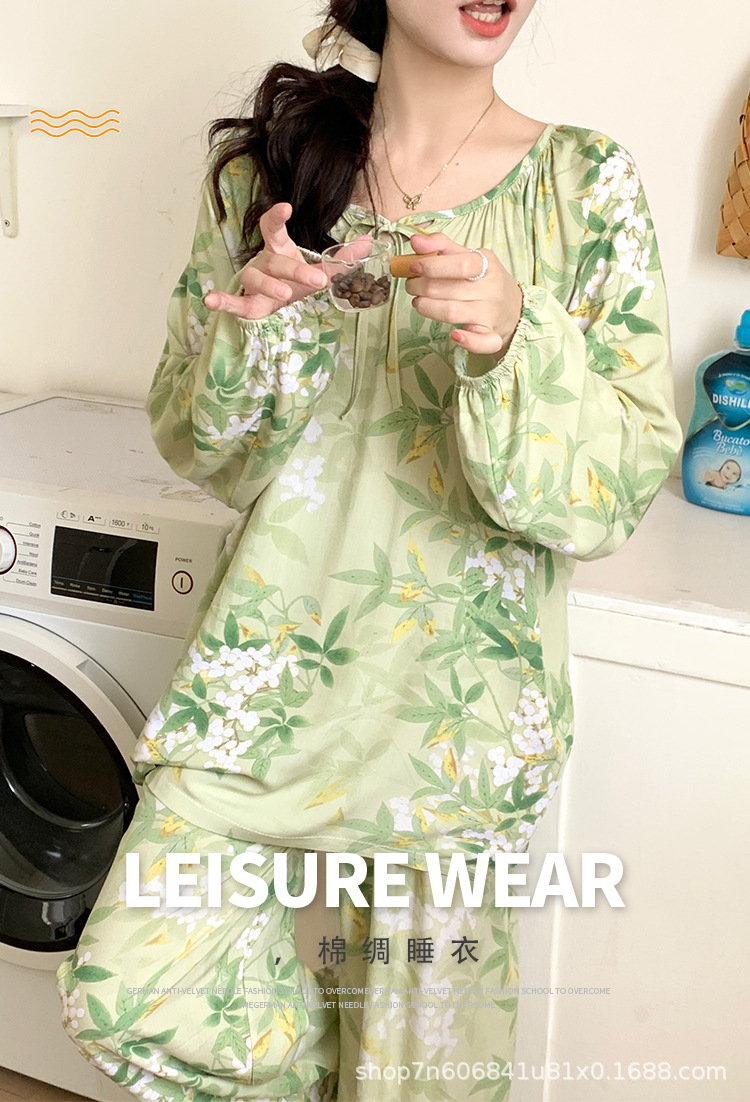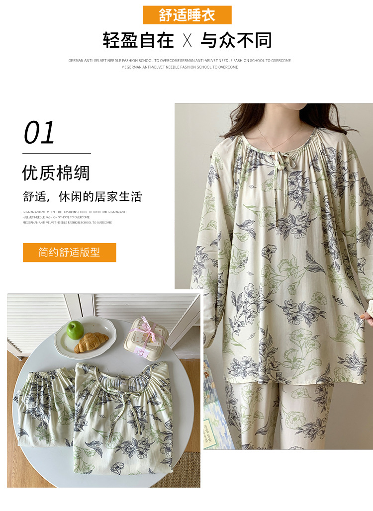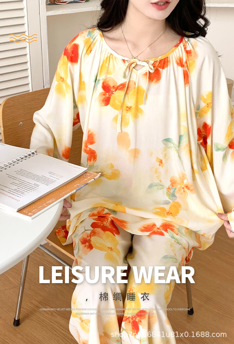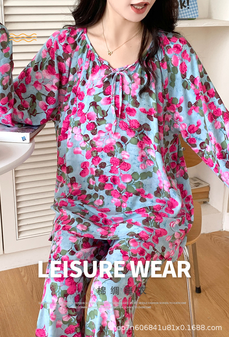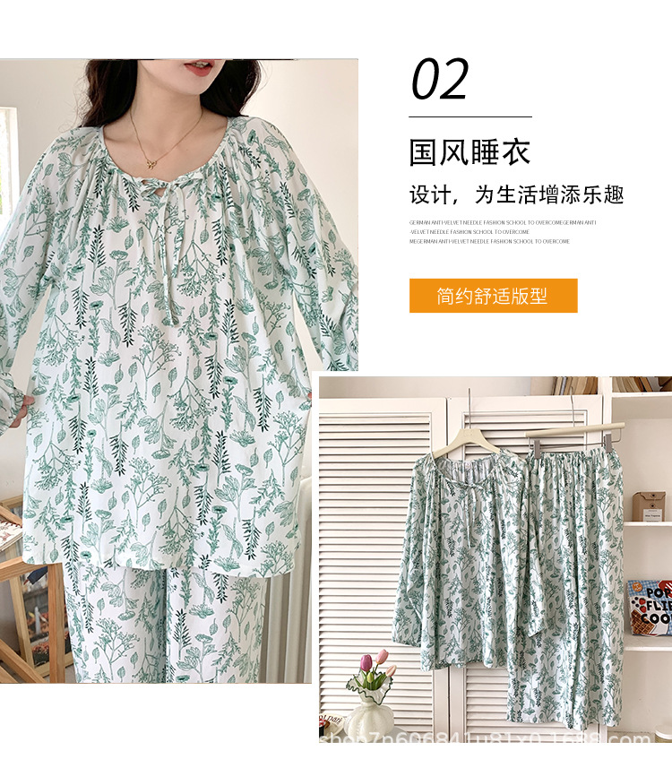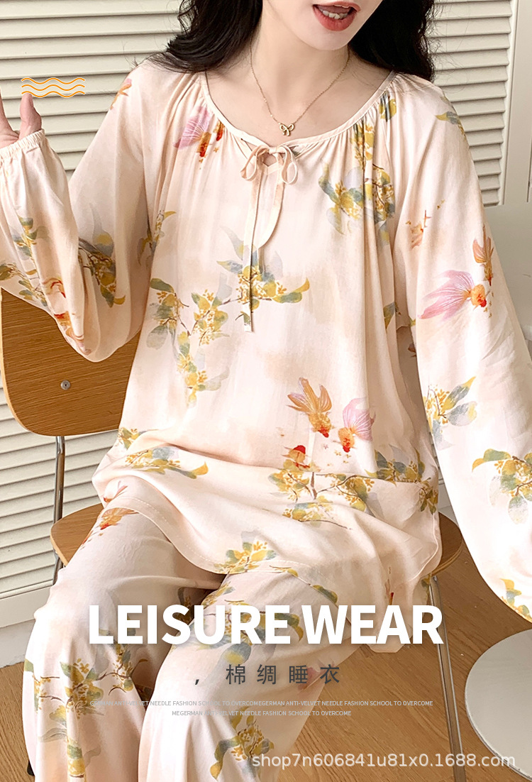 새로운 Guofeng 면 실크 파자마 여성 여름 느슨한 긴팔 에어컨 옷 봄과 가을 인공 면 달콤한 홈 의류 세트