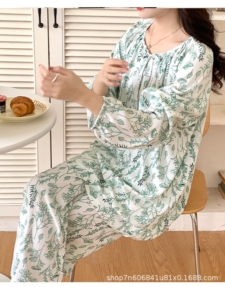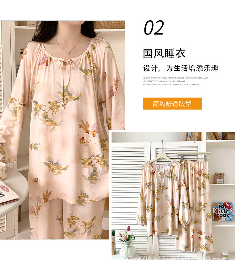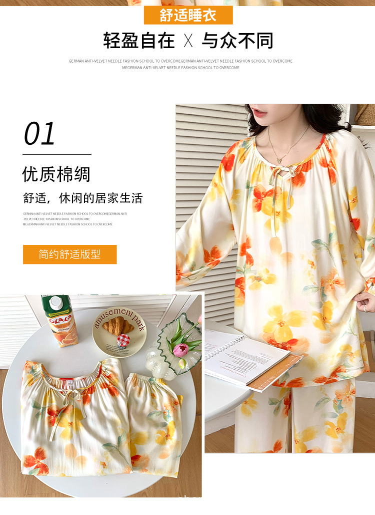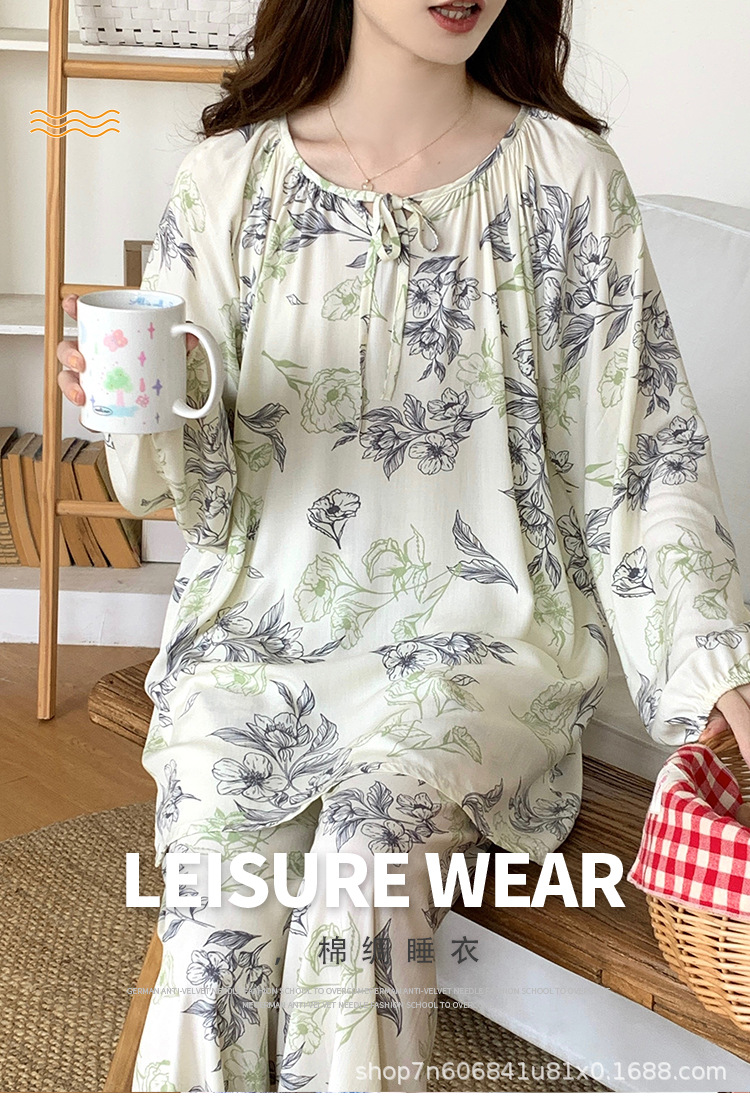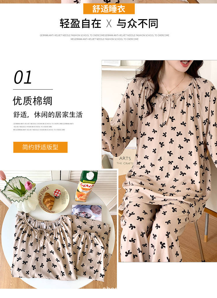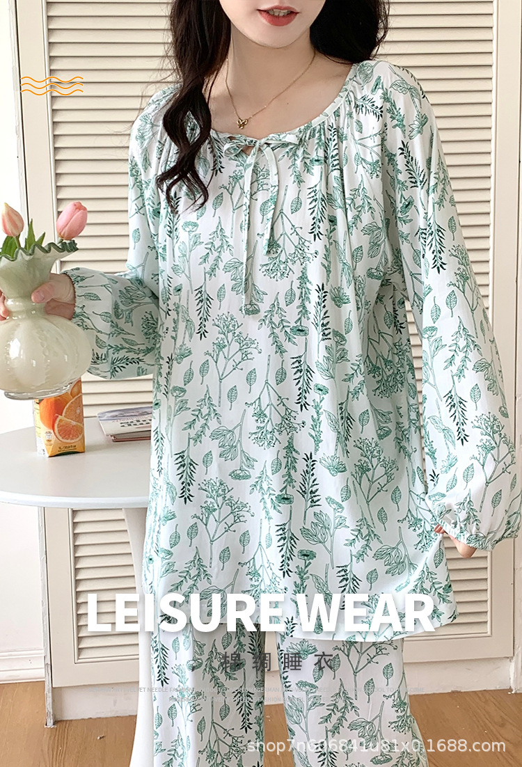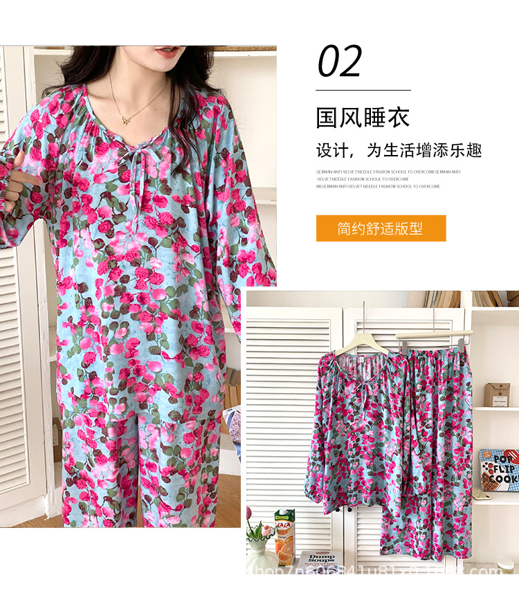 새로운 Guofeng 면 실크 파자마 여성 여름 느슨한 긴팔 에어컨 옷 봄과 가을 인공 면 달콤한 홈 의류 세트