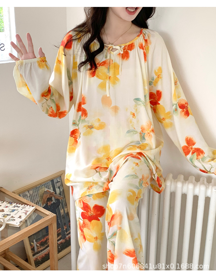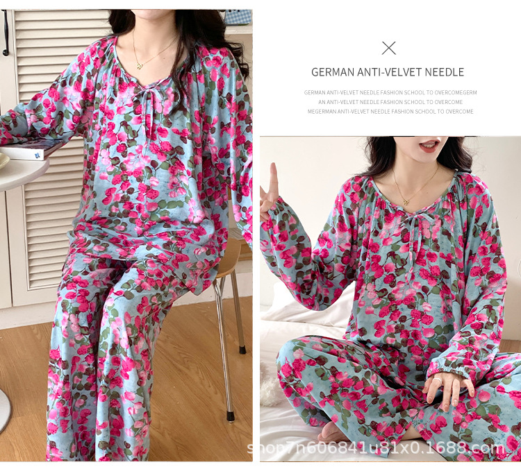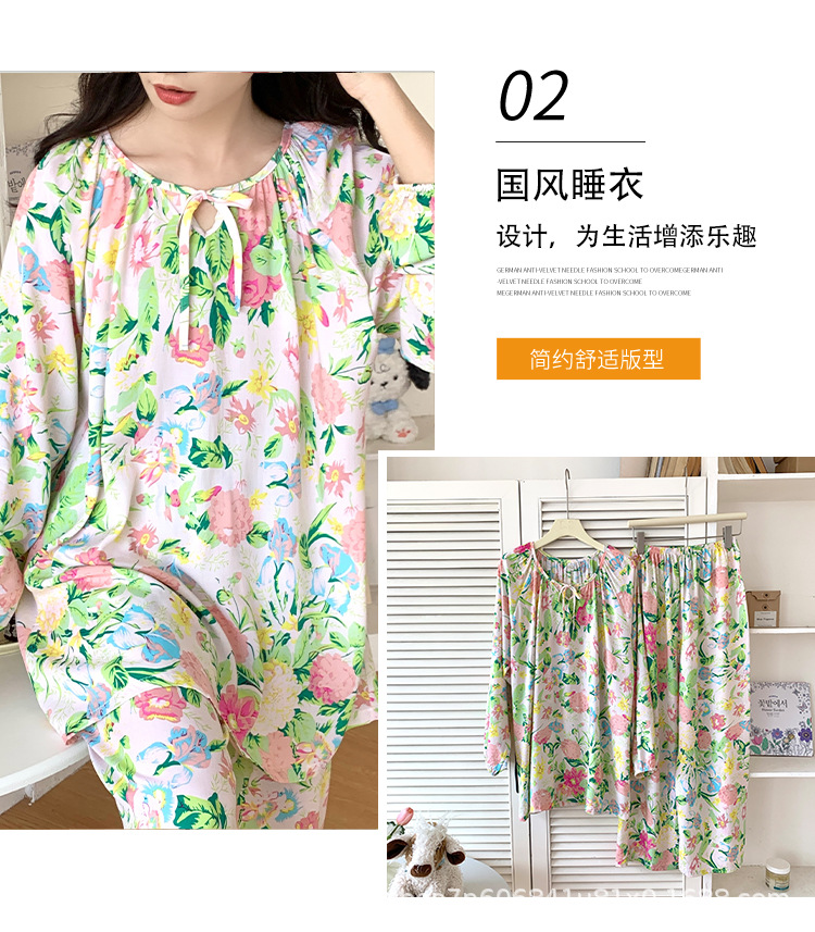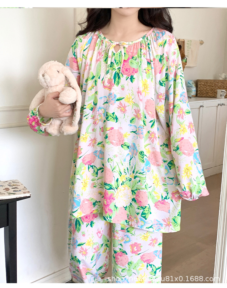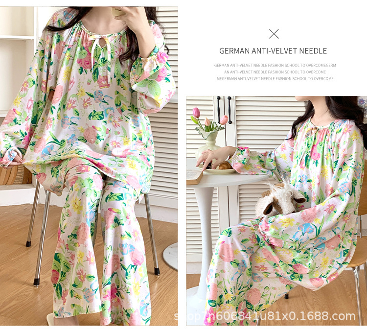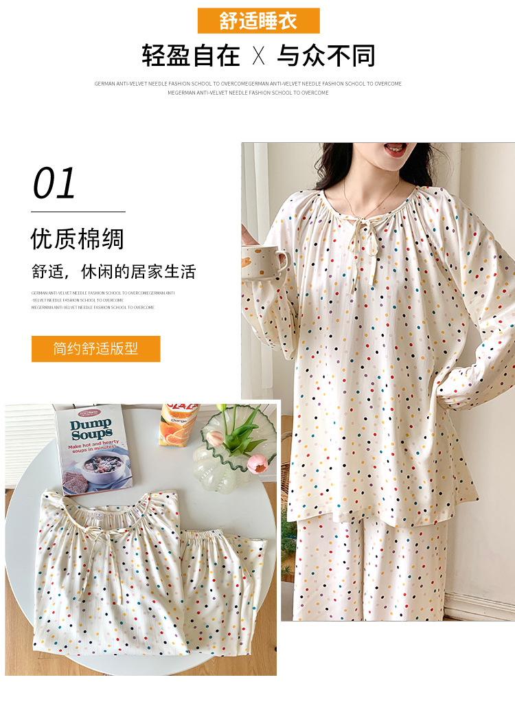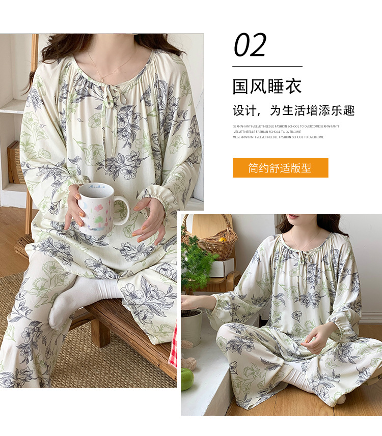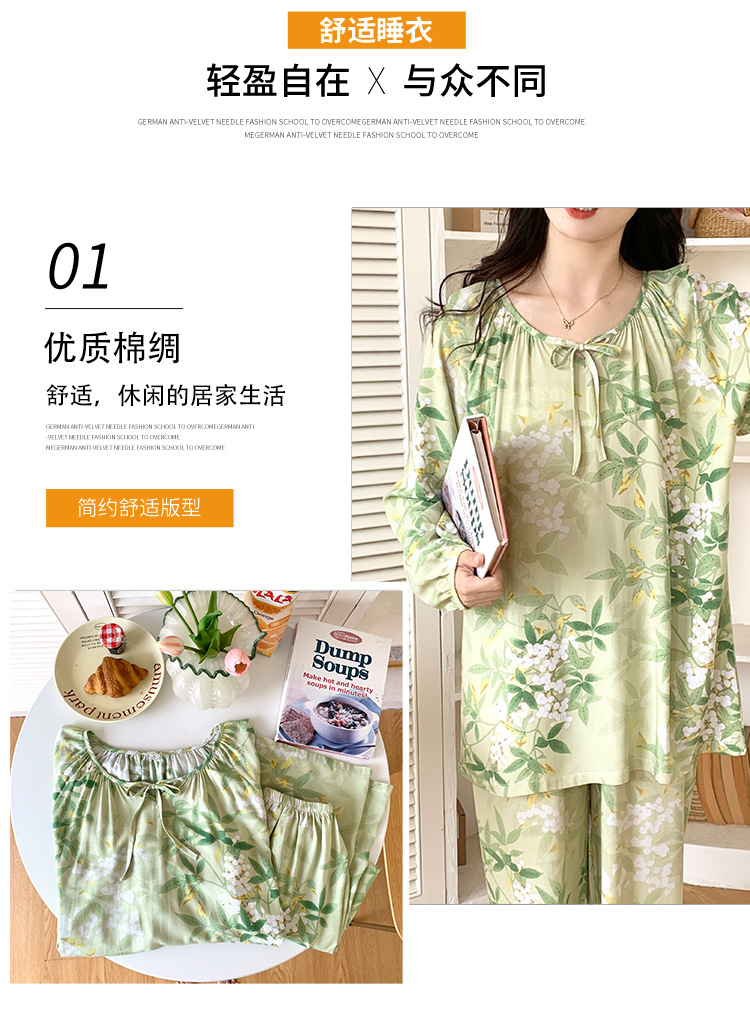 새로운 Guofeng 면 실크 파자마 여성 여름 느슨한 긴팔 에어컨 옷 봄과 가을 인공 면 달콤한 홈 의류 세트