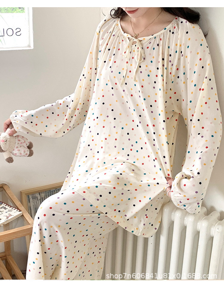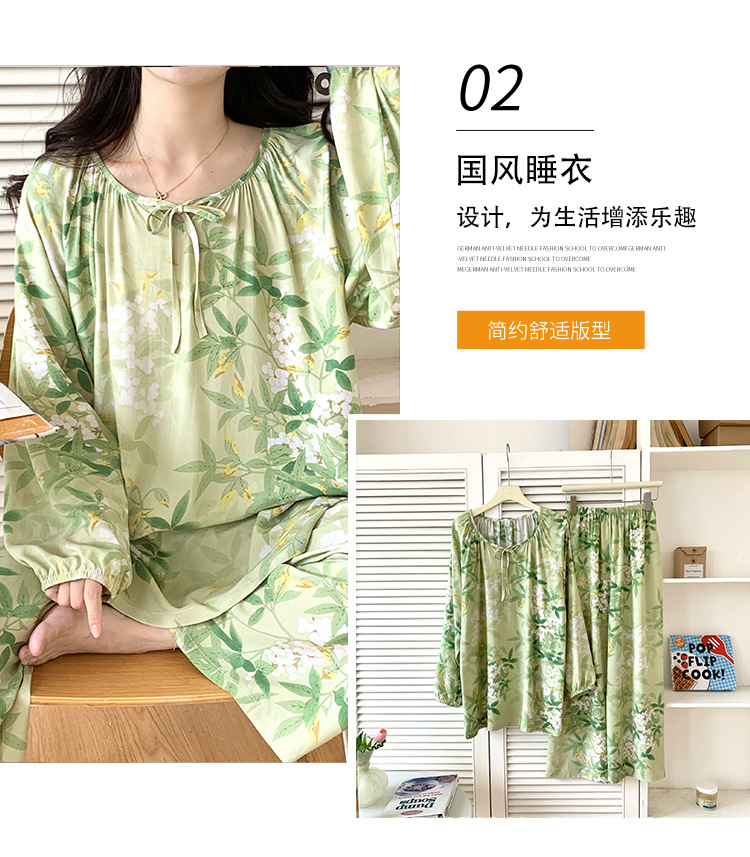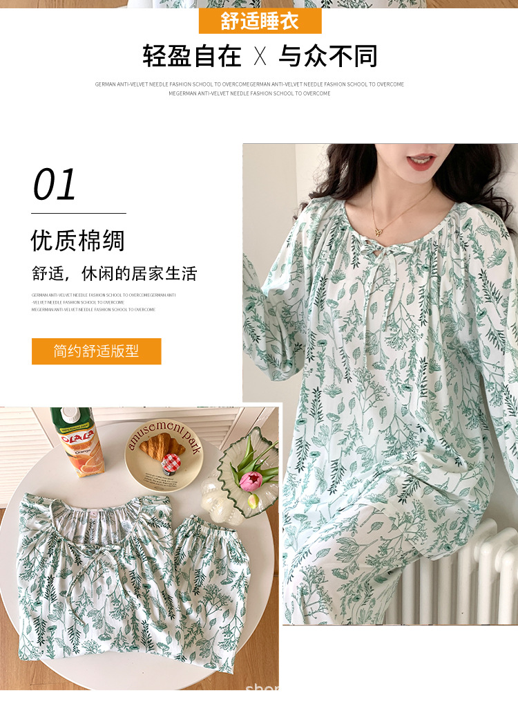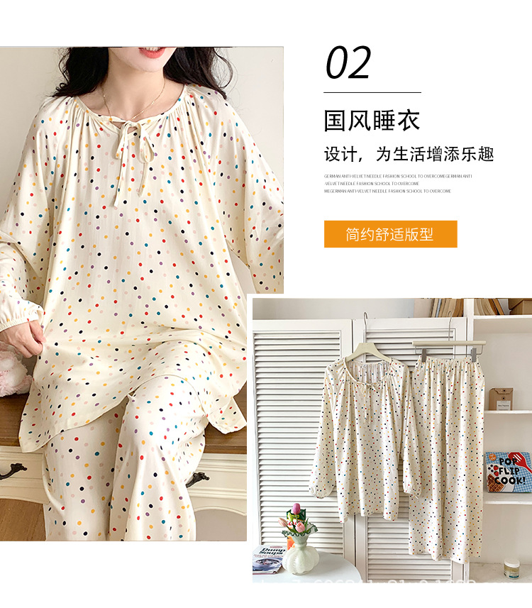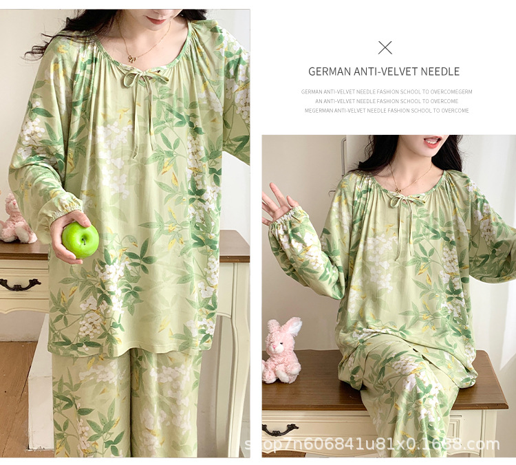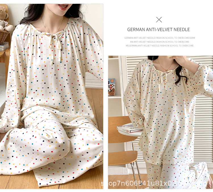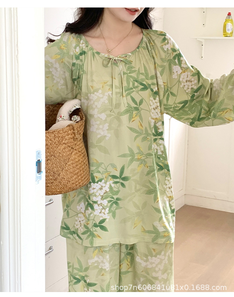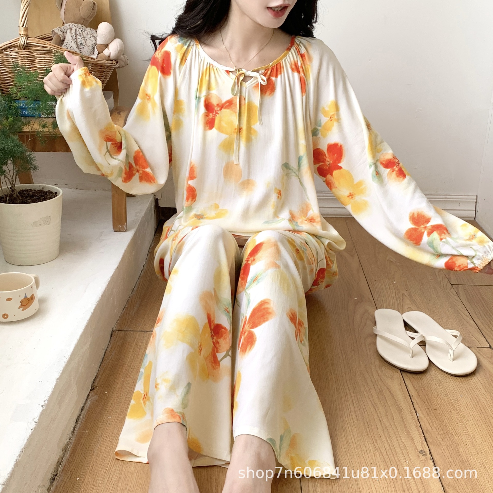 새로운 Guofeng 면 실크 파자마 여성 여름 느슨한 긴팔 에어컨 옷 봄과 가을 인공 면 달콤한 홈 의류 세트