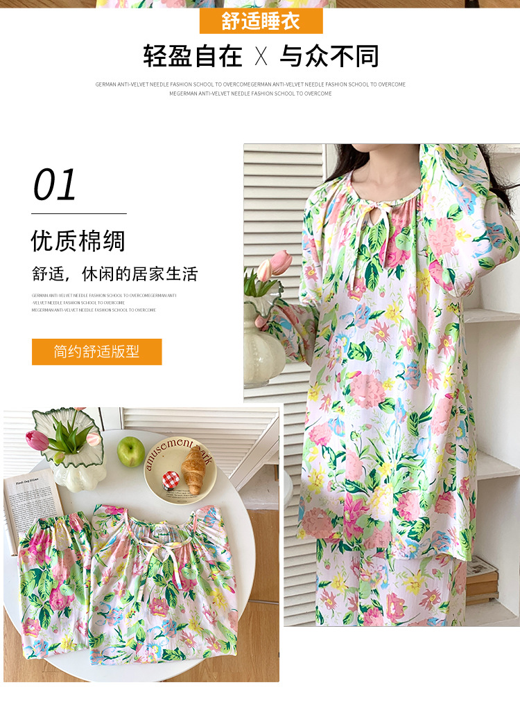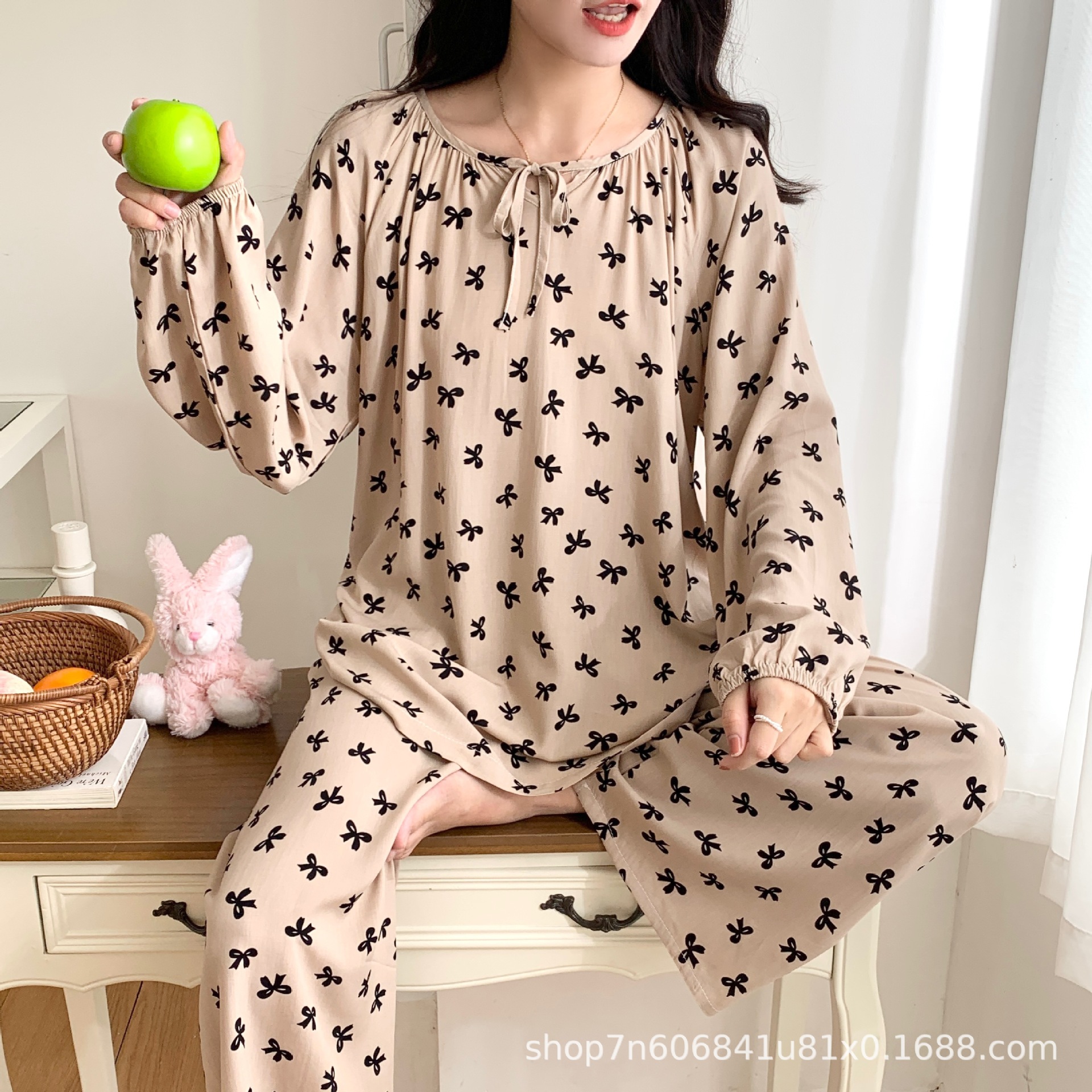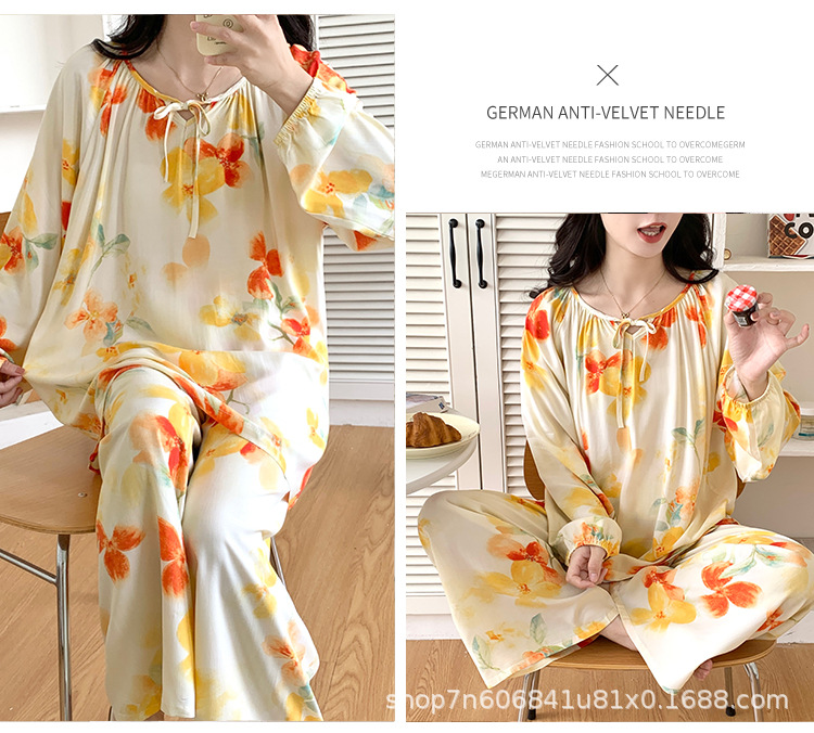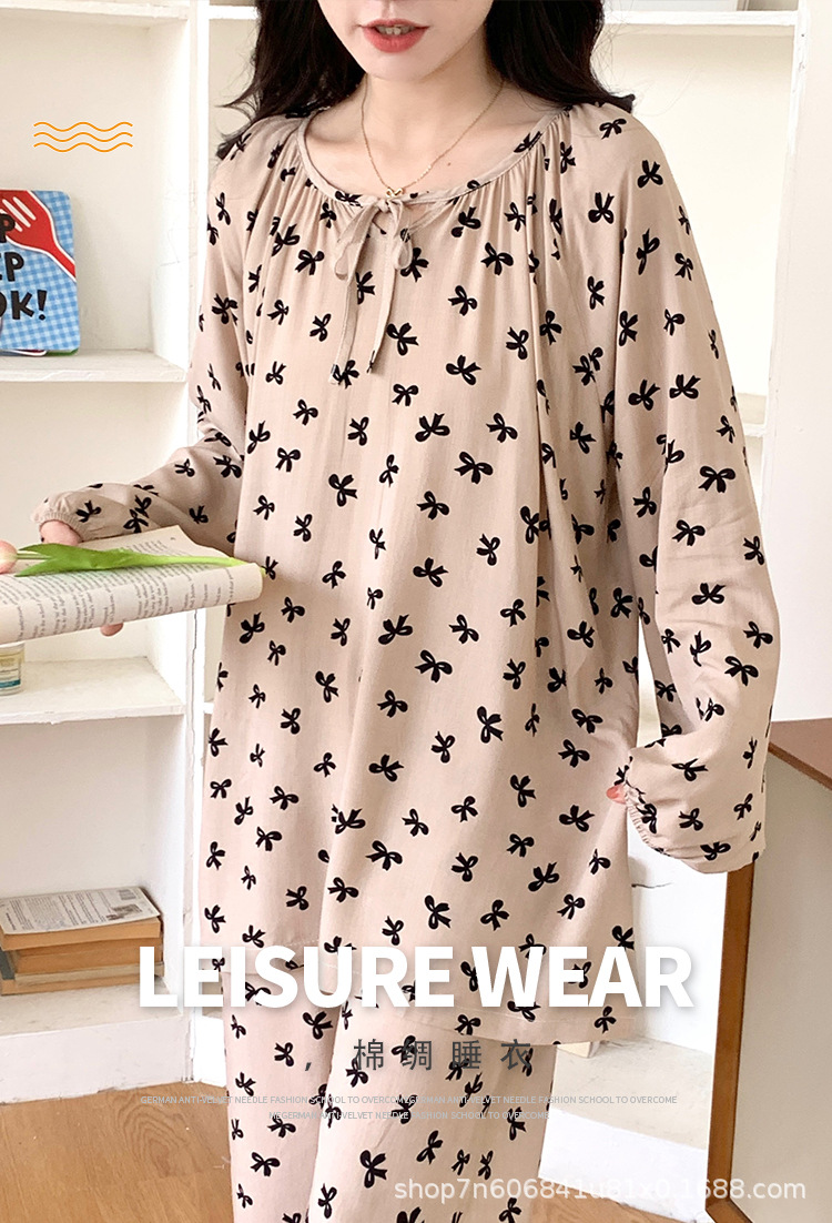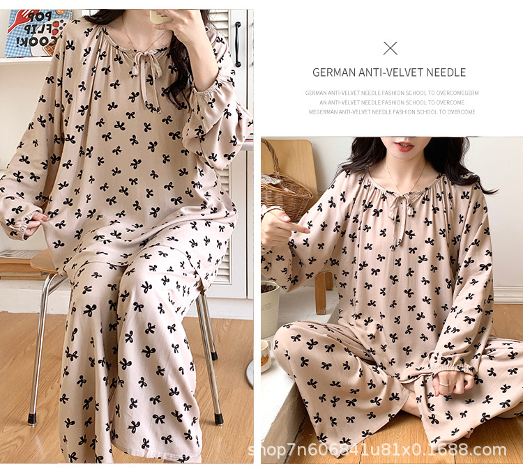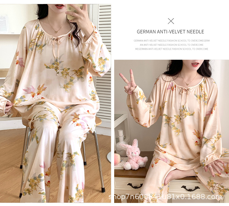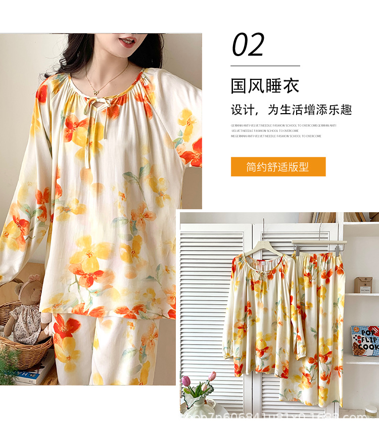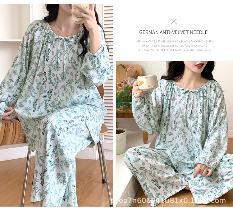 새로운 Guofeng 면 실크 파자마 여성 여름 느슨한 긴팔 에어컨 옷 봄과 가을 인공 면 달콤한 홈 의류 세트스토어 가기