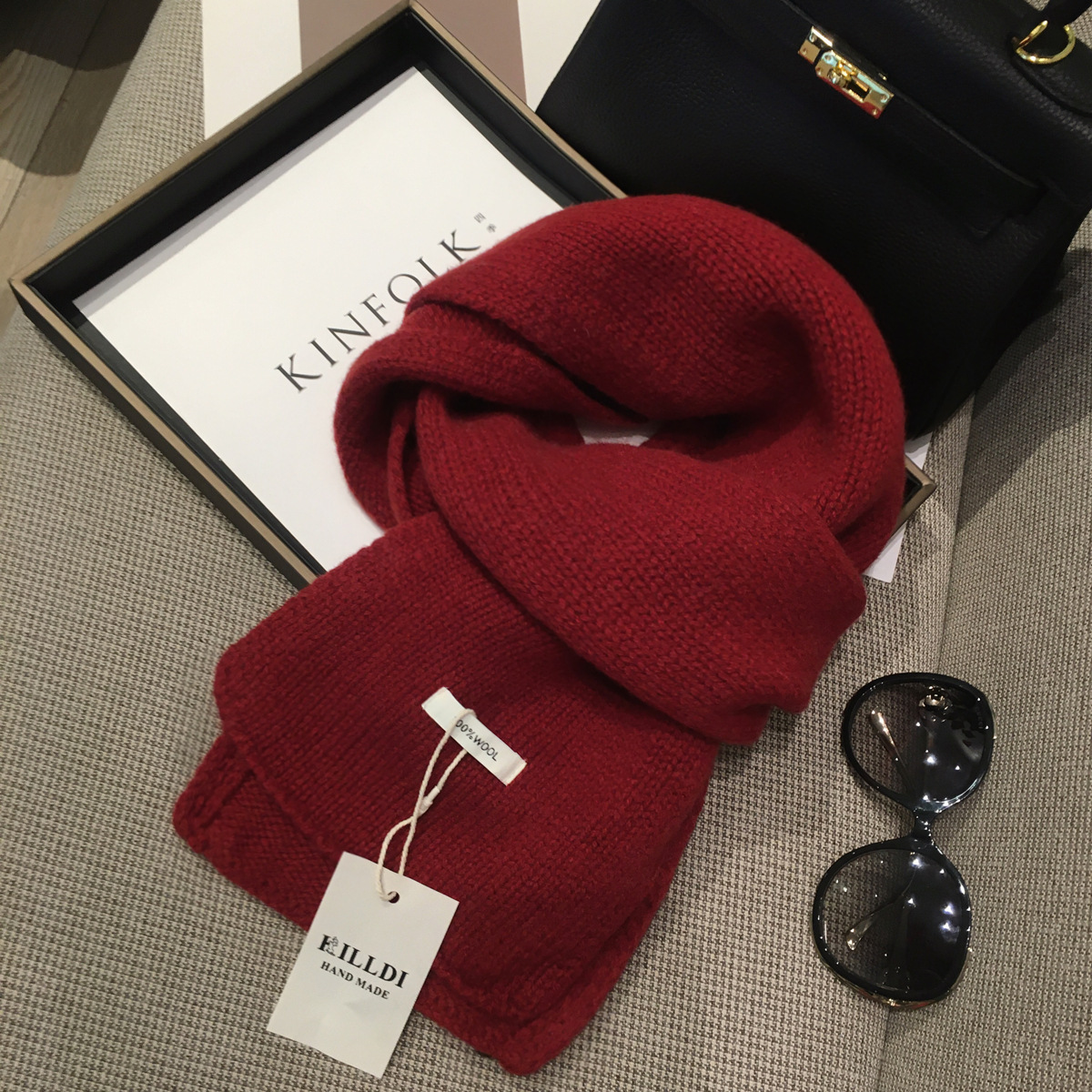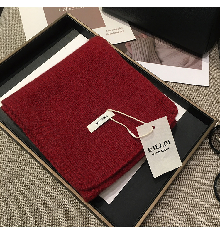 고급 호주 100 순수 양모 스카프 여자 겨울 올 매치 솔리드 컬러 목도리 학생 커플 두꺼운 따뜻한 스카프