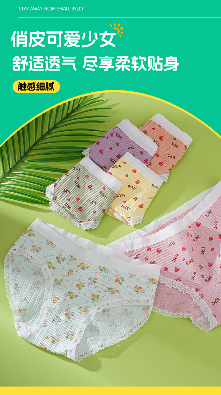 일본 달콤한 소녀 귀엽고 편안한 미드 로우 허리면 속옷 여성 도매 통기성 항균 가랑이 여성용 브리핑스토어 가기
