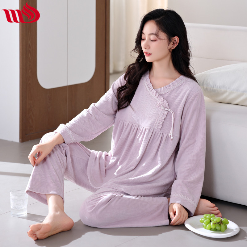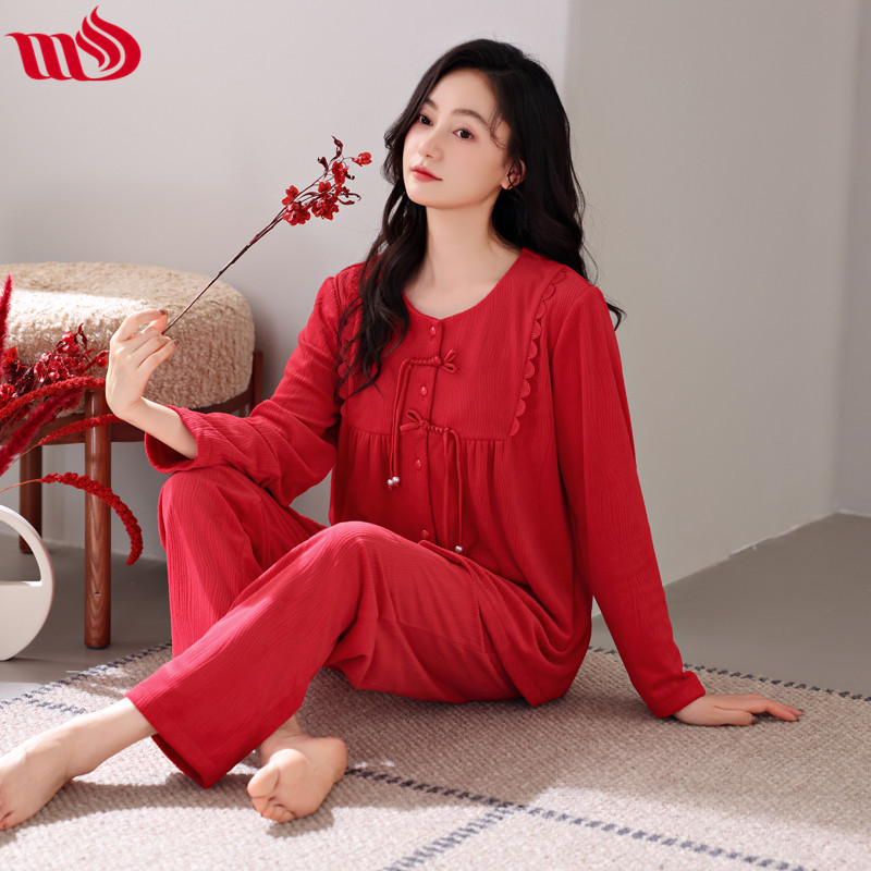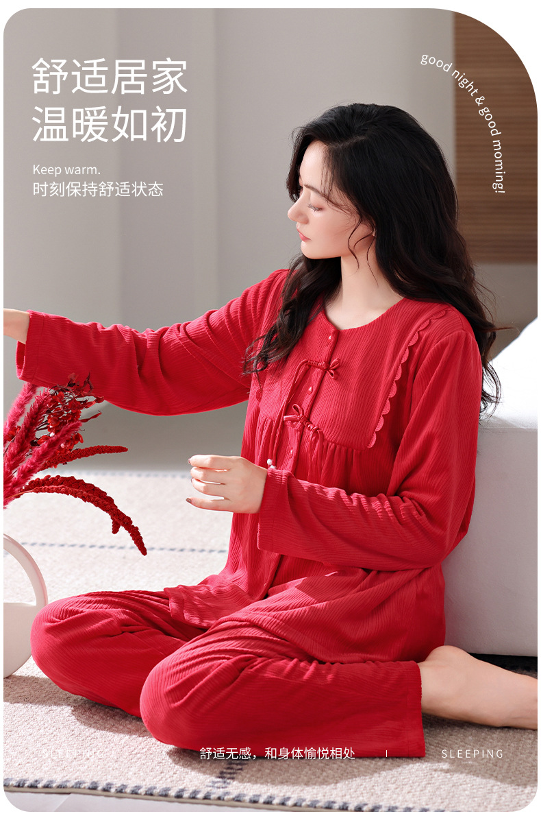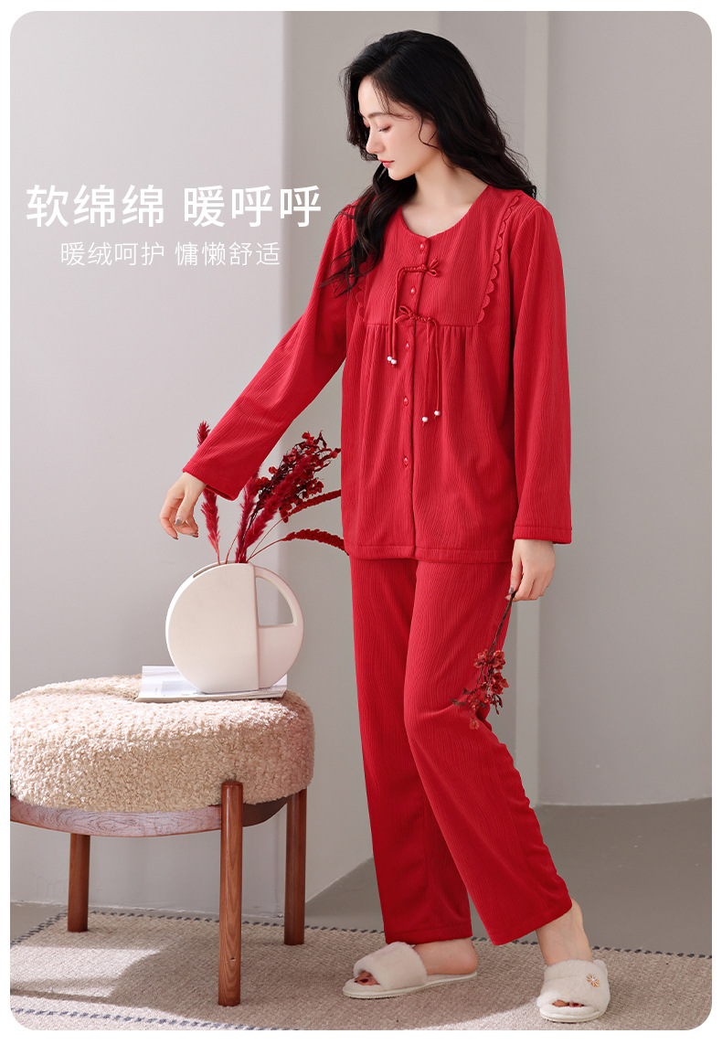 Mulong Aristocratic Family Island Velvet Pajamas 여성의 가을과 겨울 붉은 얇은 벨벳 따뜻한 긴 소매 새로운 산호 세트 두껍게스토어 가기