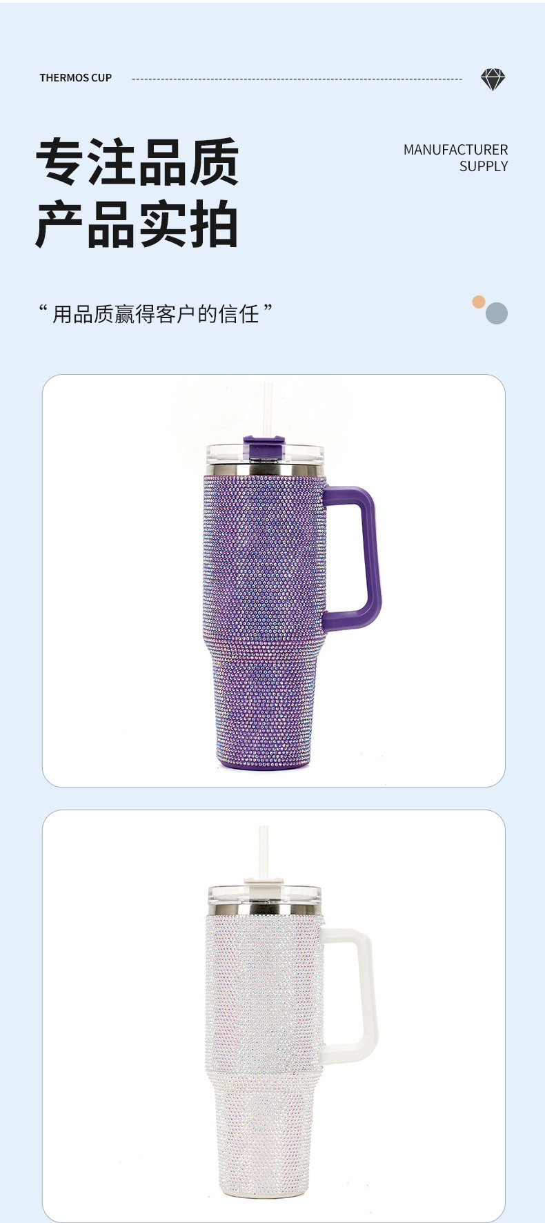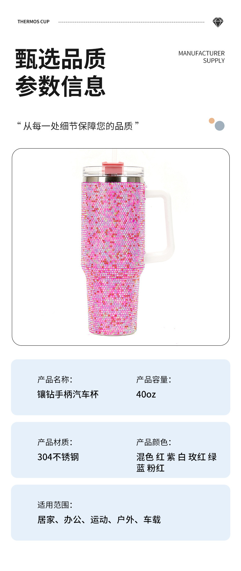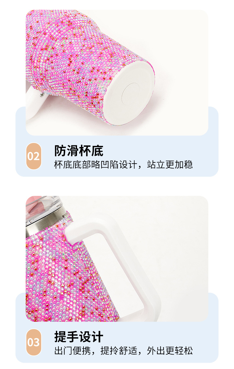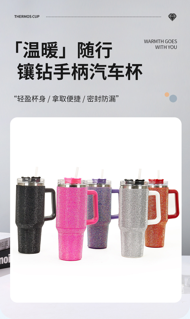 새로운 304 스테인레스 스틸 40oz 다이아몬드 핸들 자동차 컵 대용량 스탠리, 소 드릴 보온병 컵스토어 가기